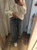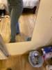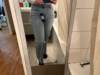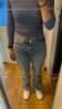 excuse the dirty mirror but I’m pleasantly surprised with these jeans. I wasn’t expecting them to fit so nicely on the waist and hip. However the bottom is wayyy more baggier than I expected. I’m 5’1 for reference and they fall below my ankle if you’re any taller these should fit perfect. Other than that I love the colour and feel of the material.