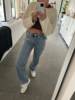 FREE SHIPPING Casual Light Blue Straight Jeans JKP4584