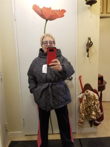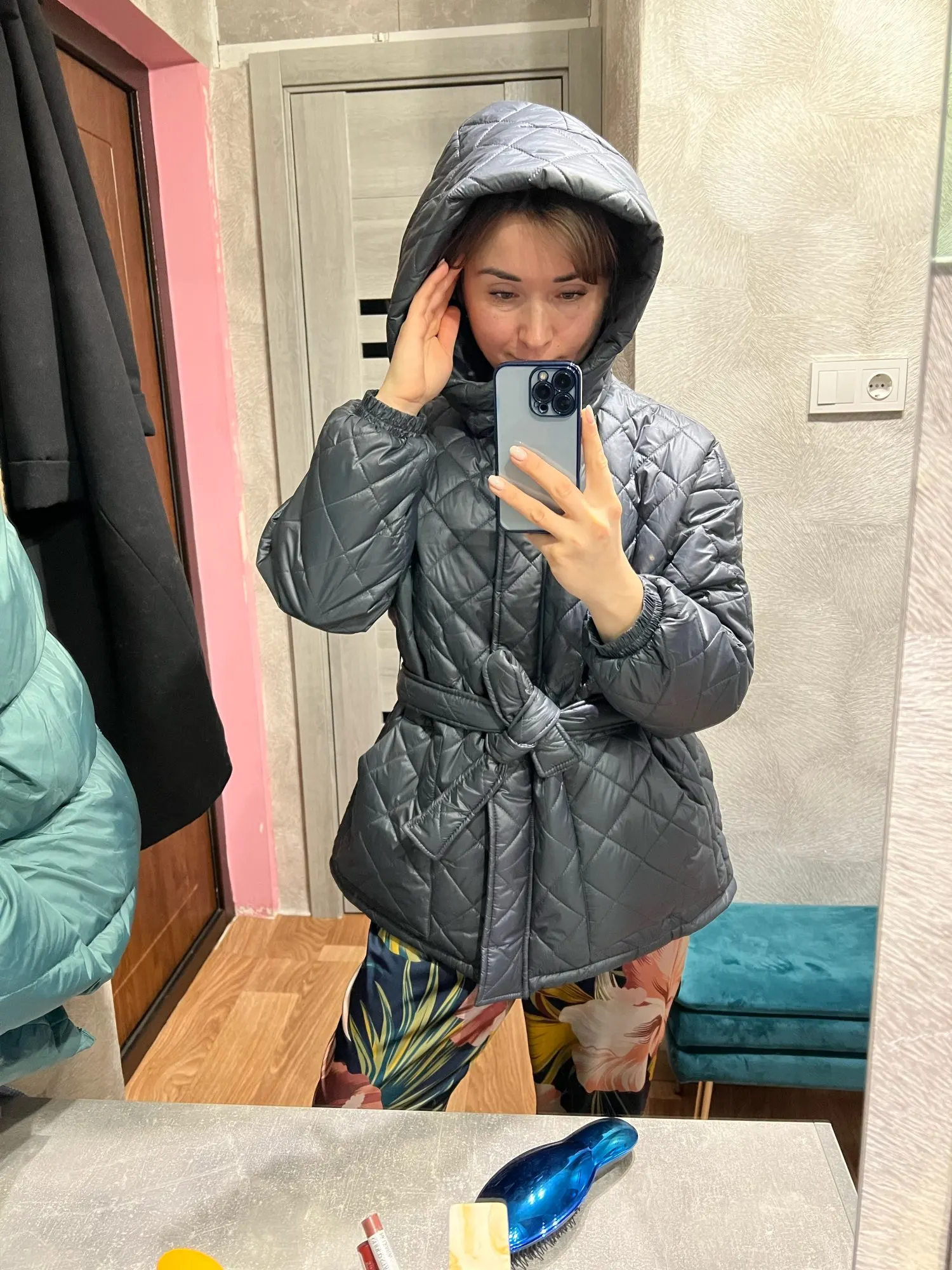 Chic jacket! For the spring-autumn season, light, beautiful gray color. At its size 44-46 ordered s. I recommend to buy.