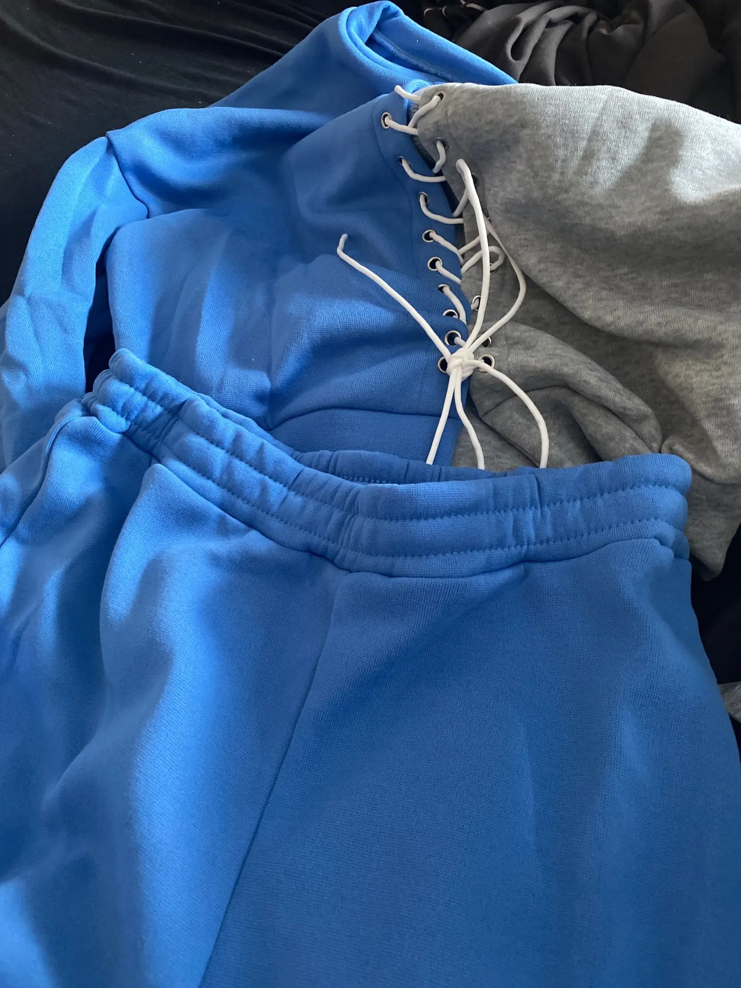 The sweats run a little big and they forgot my string to shirt. I asked for another string and they sent me a whole different outfit.