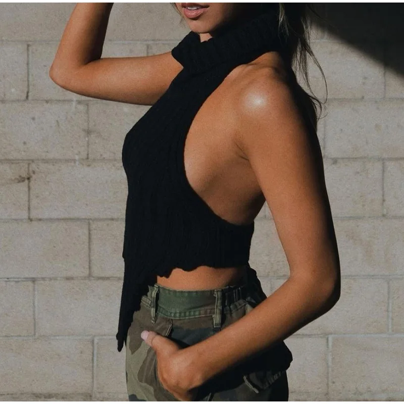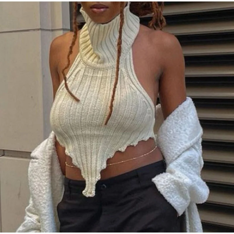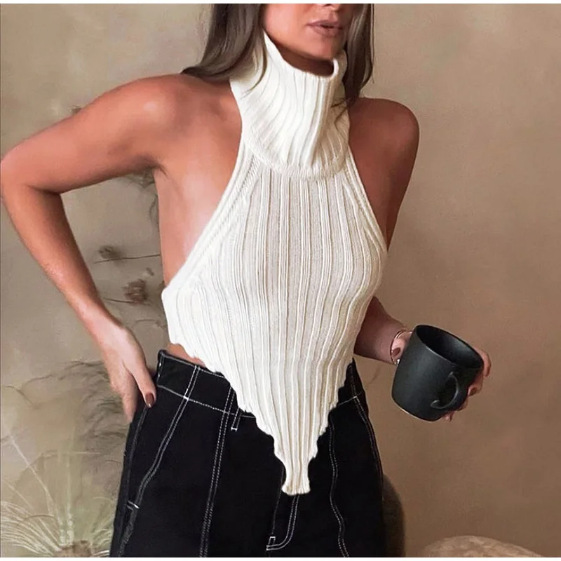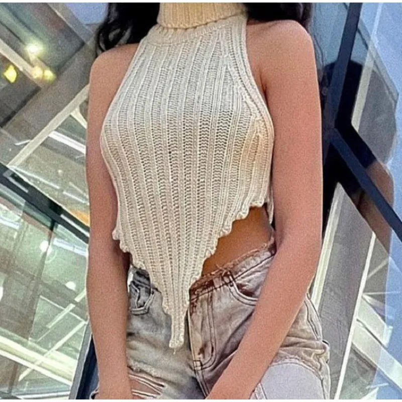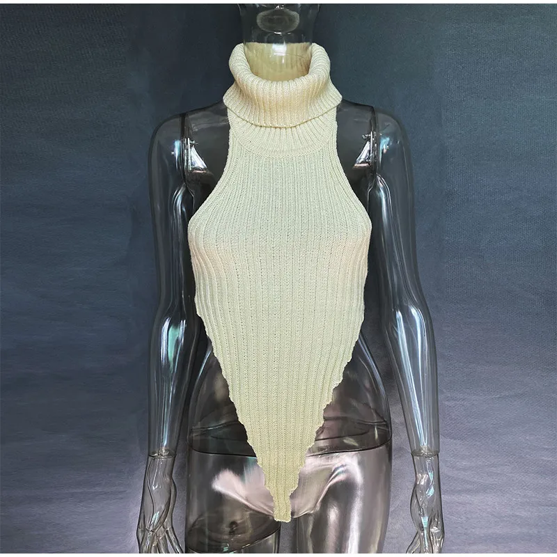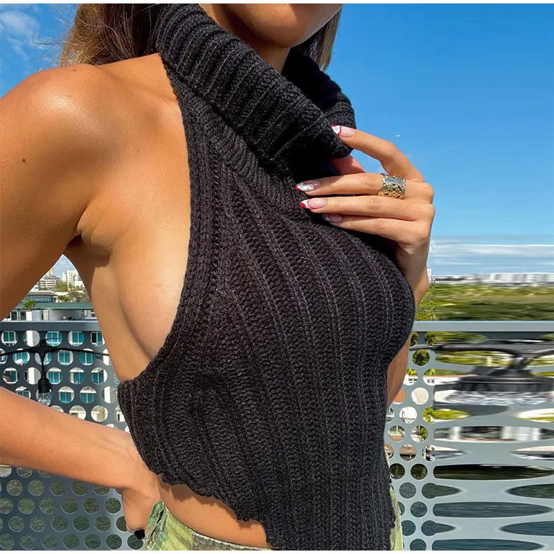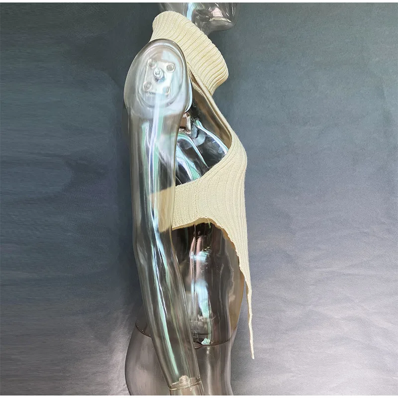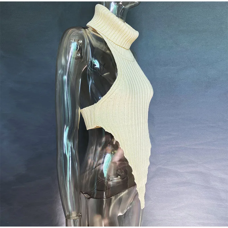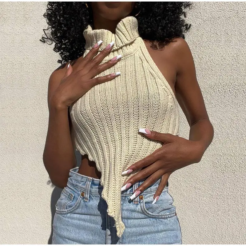 FREE SHIPPING Casual Pullover Knit Crop Top High Neck Off Shoulder Simple Solid Color JKP6062