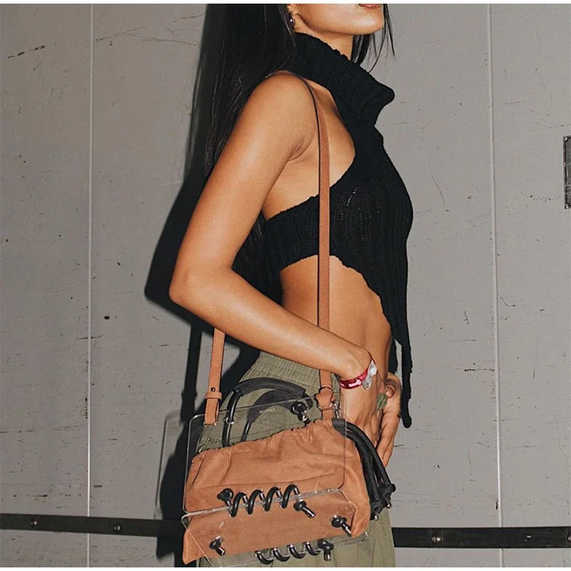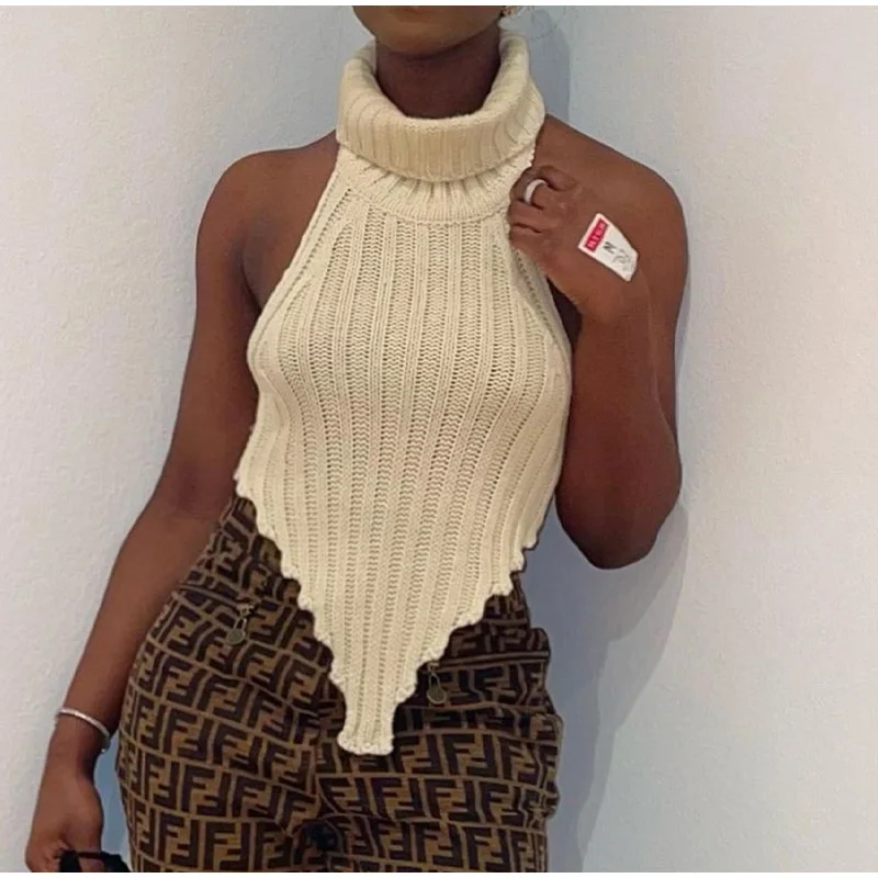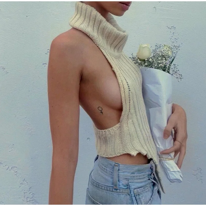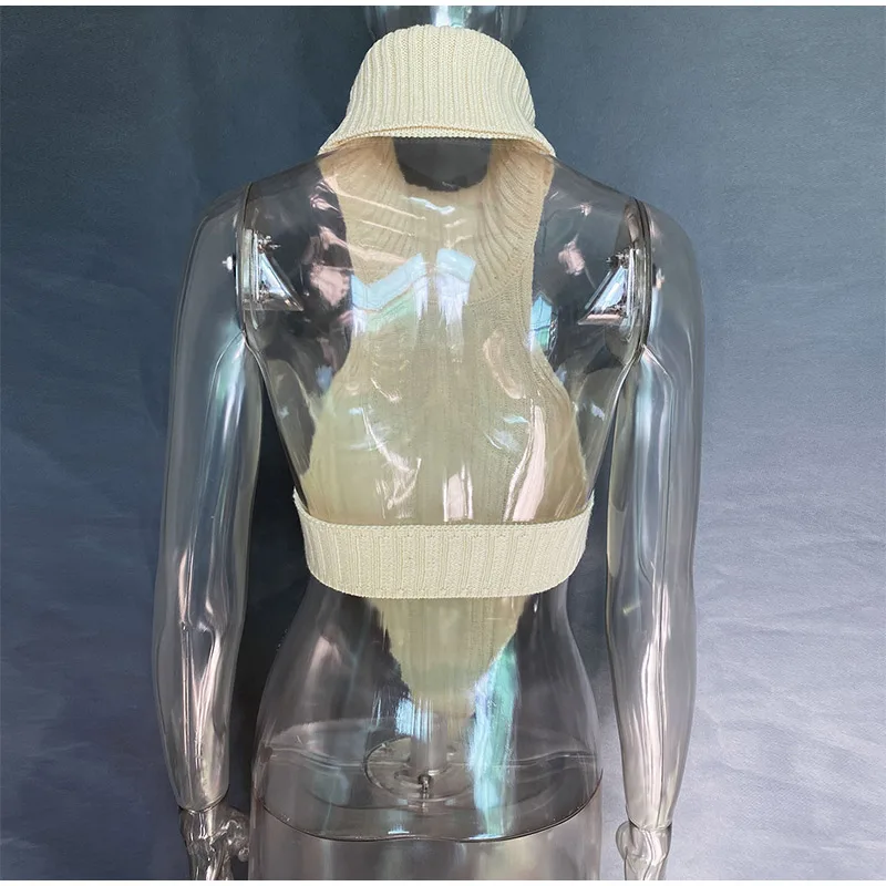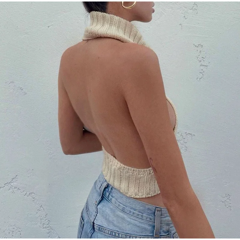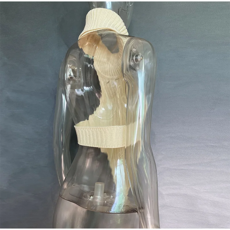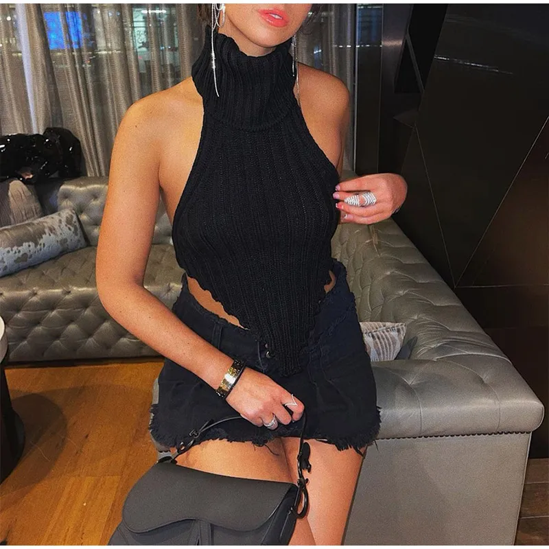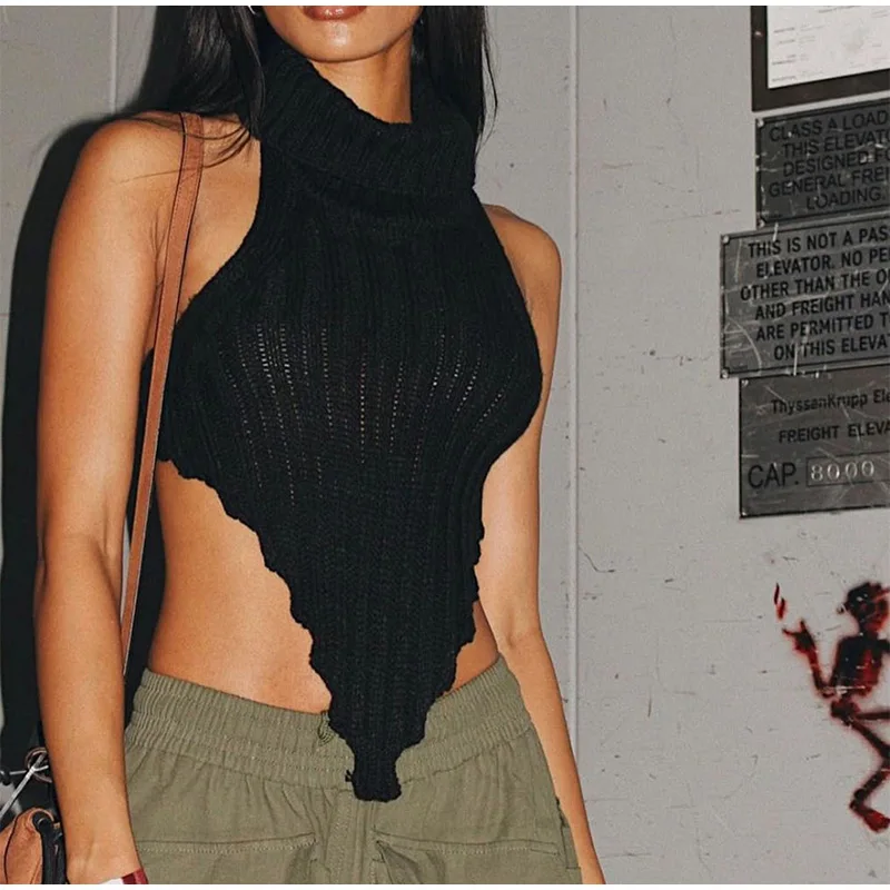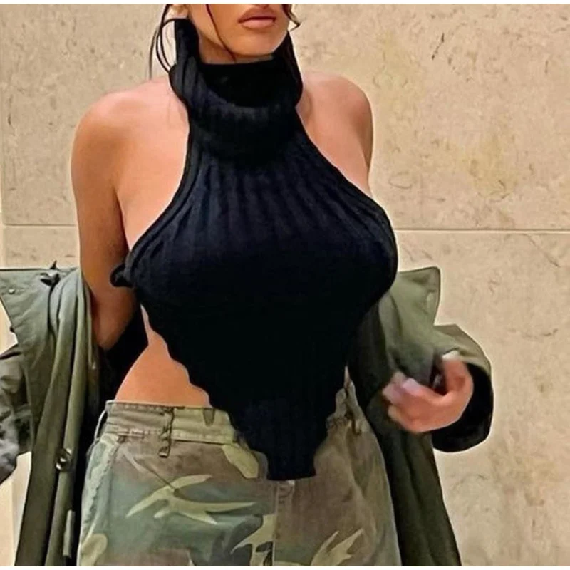 FREE SHIPPING Casual Pullover Knit Crop Top High Neck Off Shoulder Simple Solid Color JKP6062