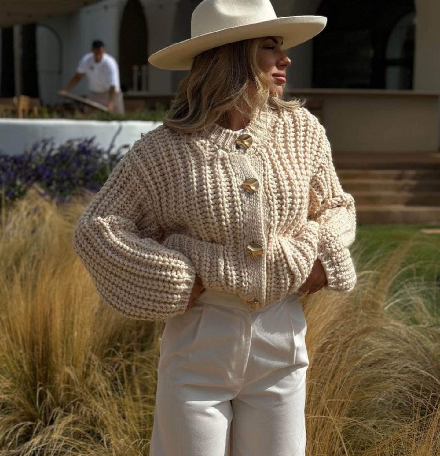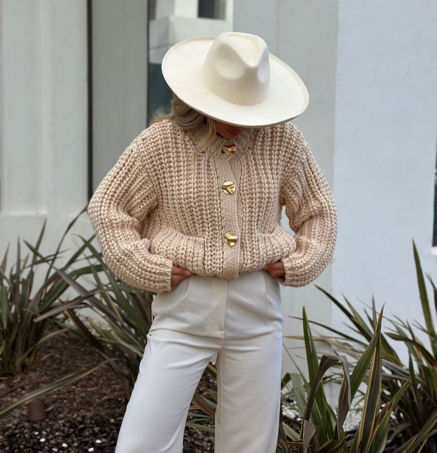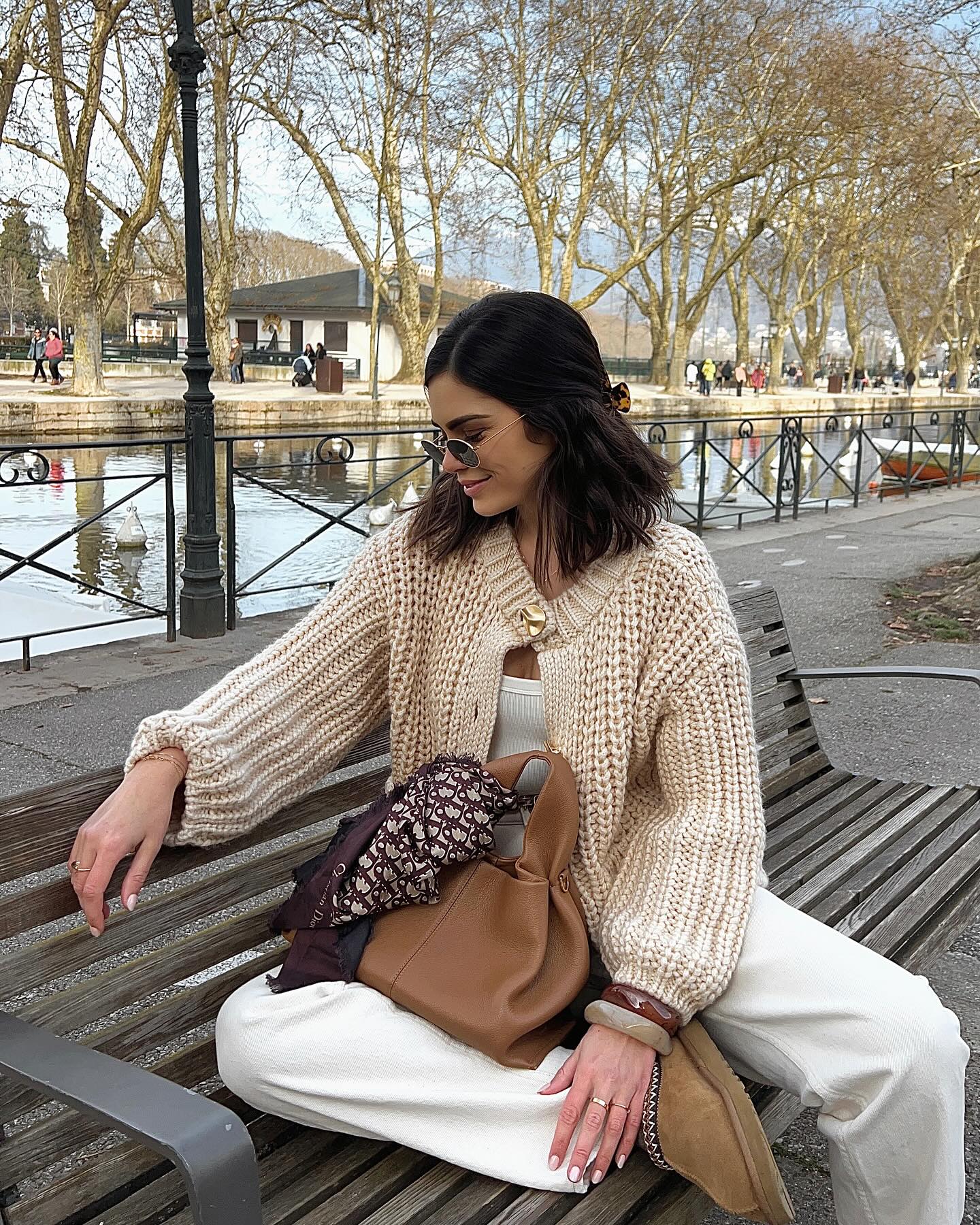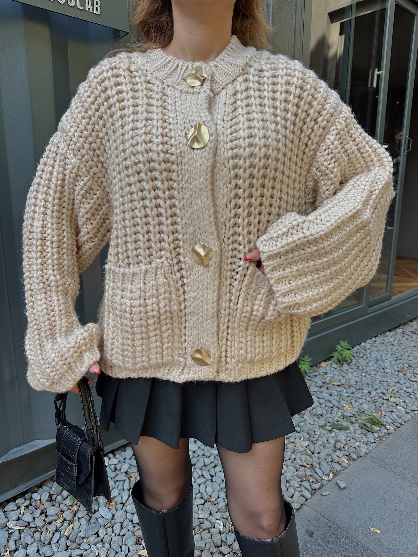 The apricot-colored sweater cardigan is simply so gentle.