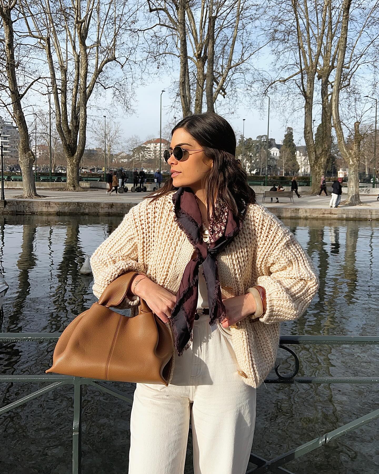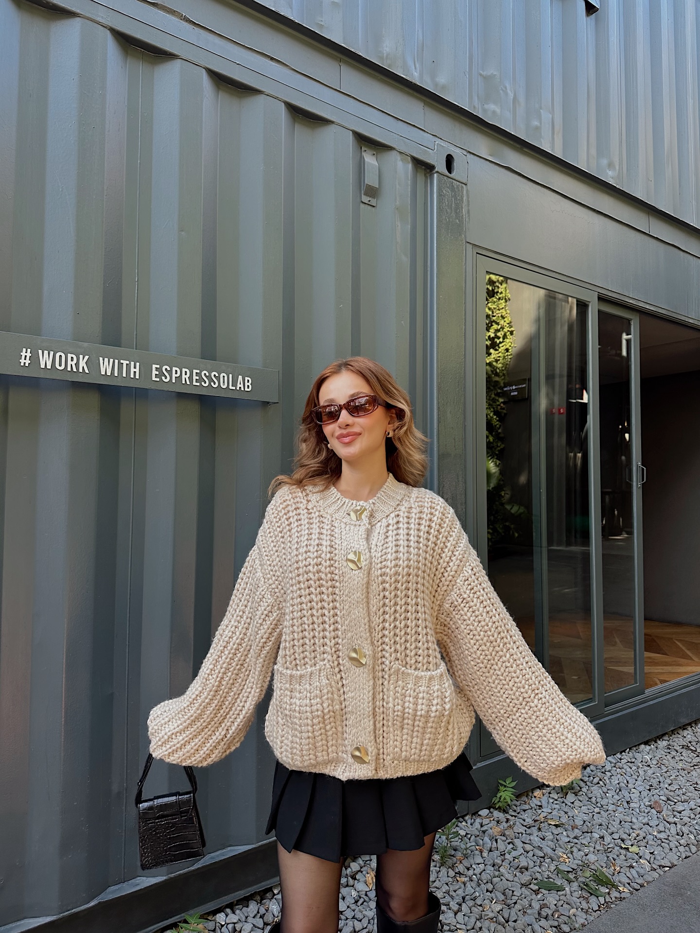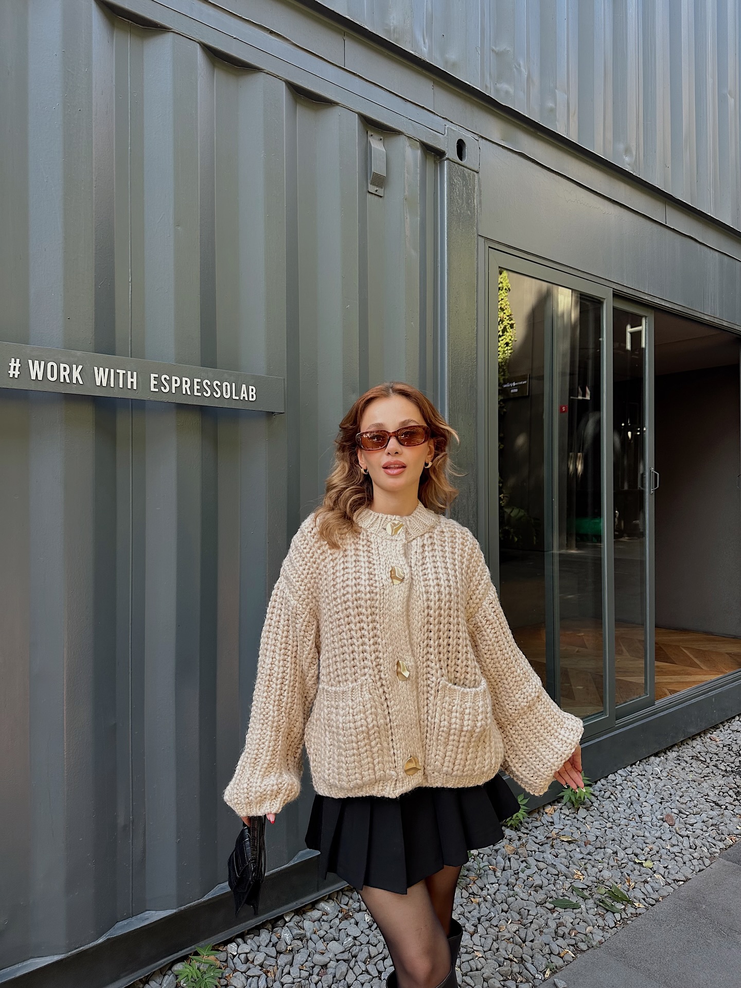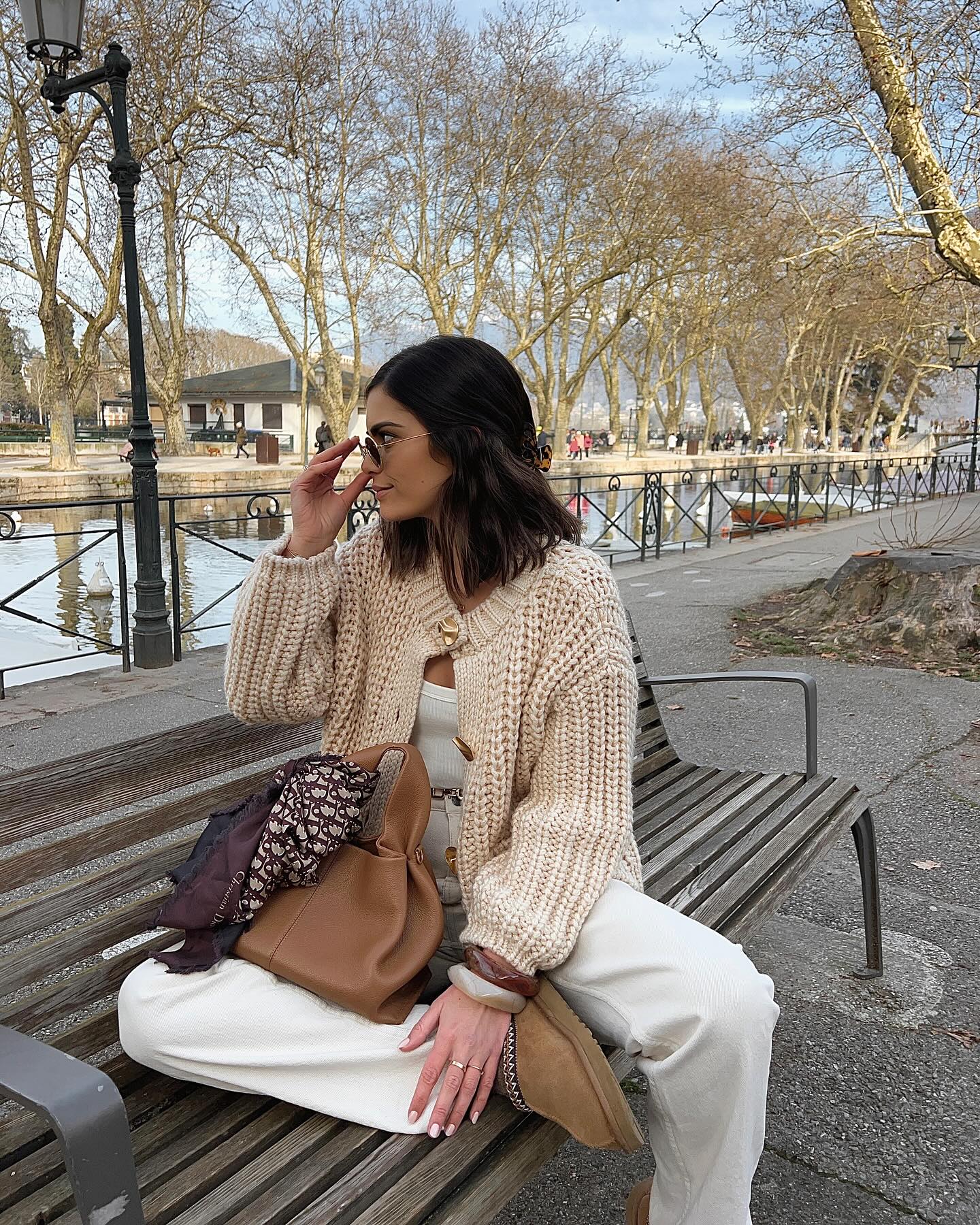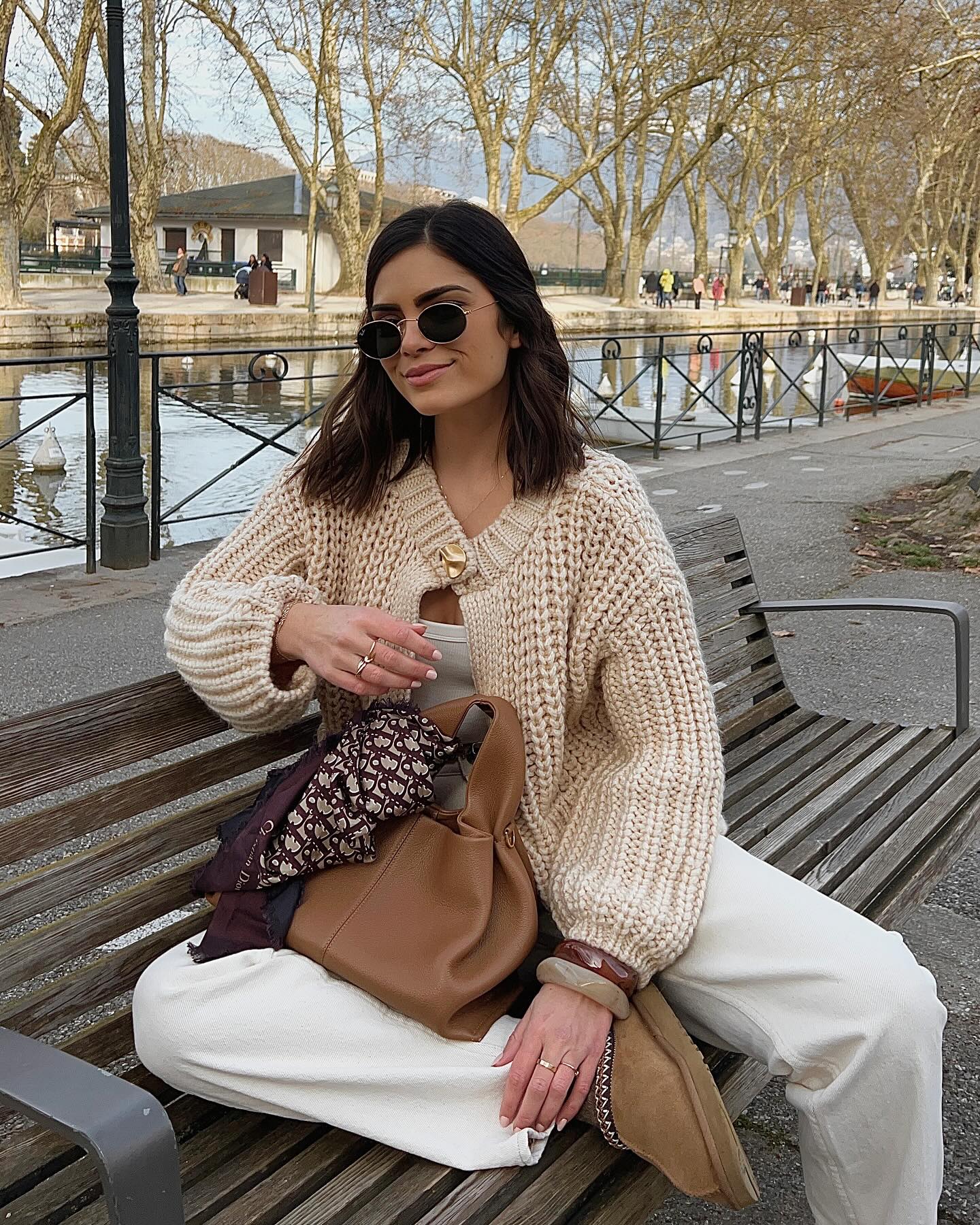 The apricot-colored sweater cardigan is simply so gentle.