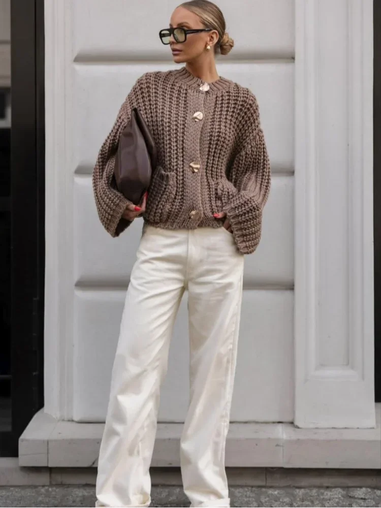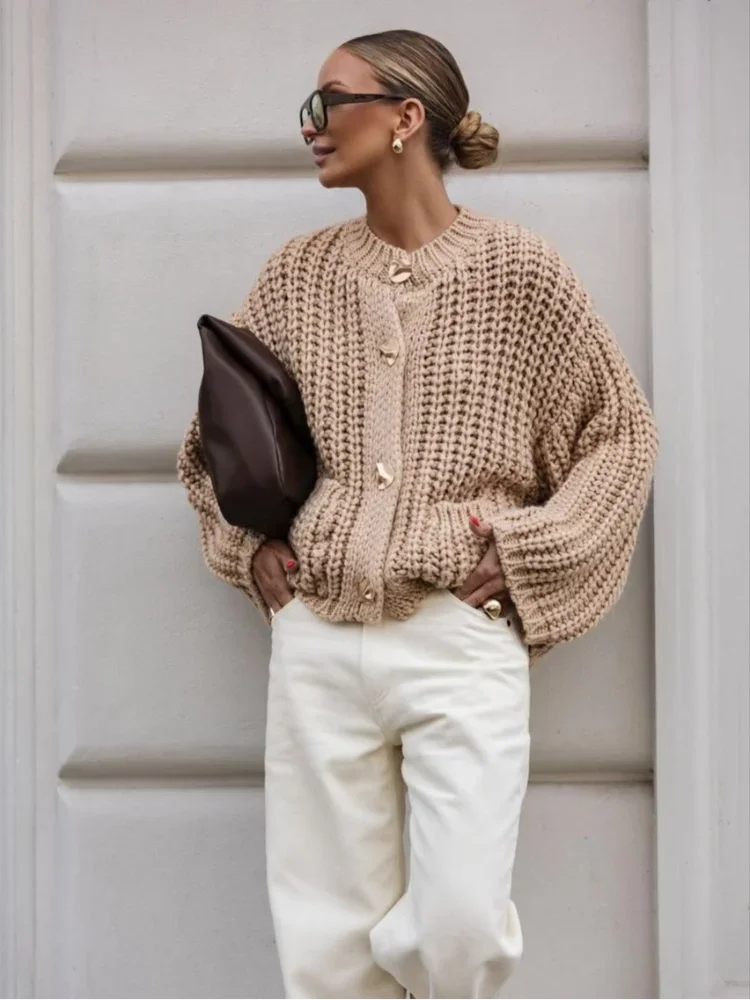The sweater material is soft and skin-friendly, and the single-breasted design is simple yet elegant.