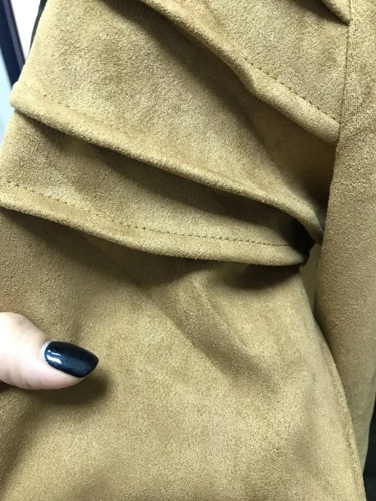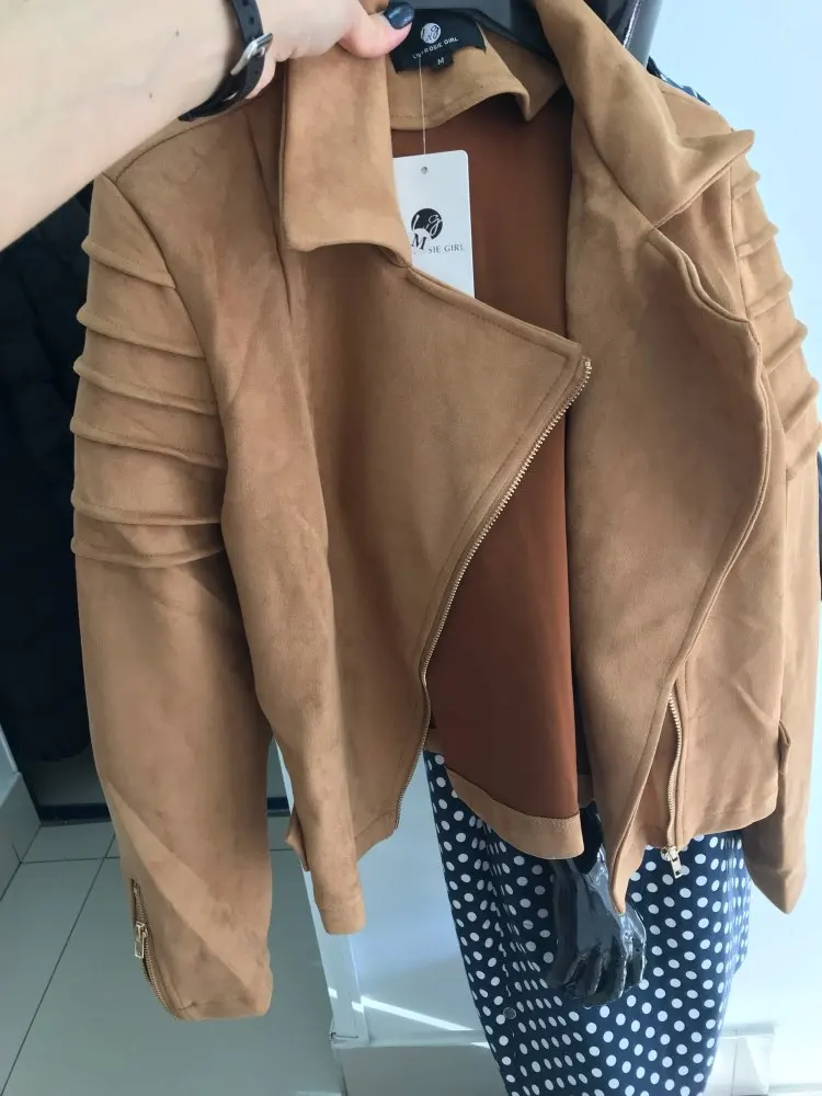 Delivered to moscow in 18 days. Suede leather. The size approached me. On my 170/84/74/96, my shoulders are 39-40 and my hands are long. If not for this, it would fit a smaller size. Caramel color. With jeans very combined. The fabric stretches perfectly, very elastic