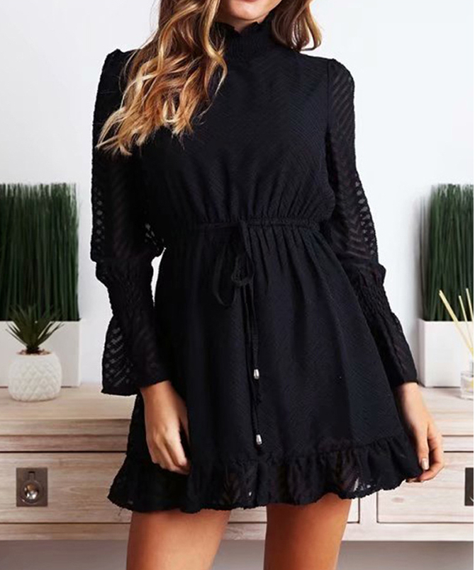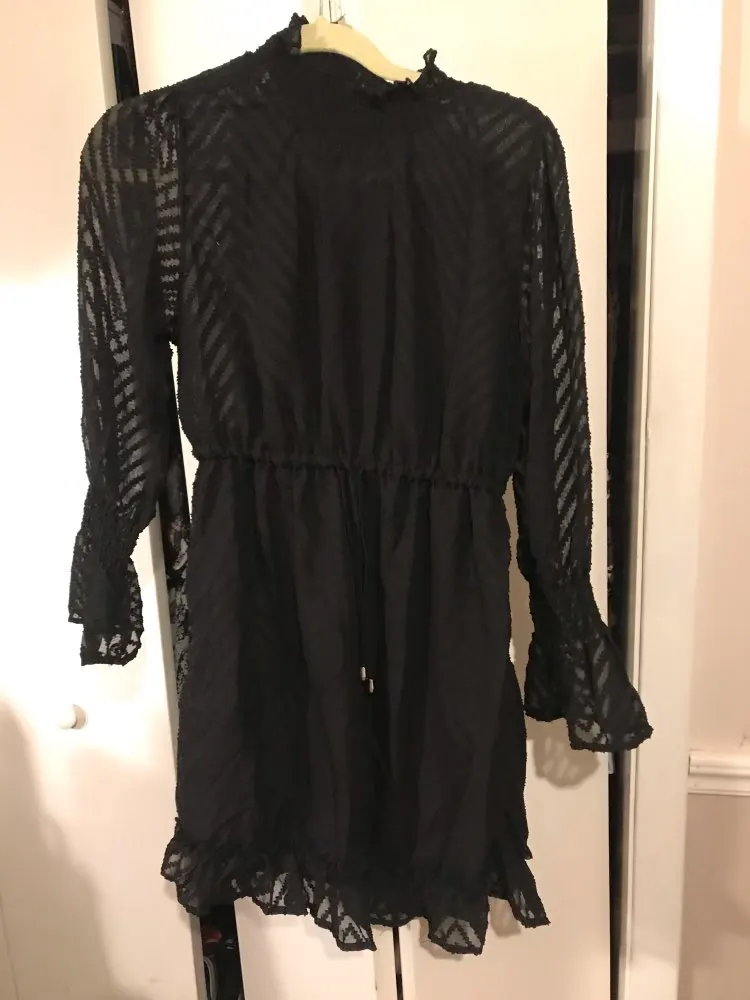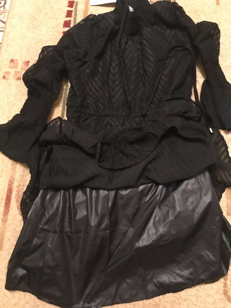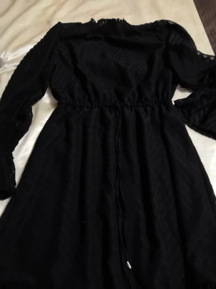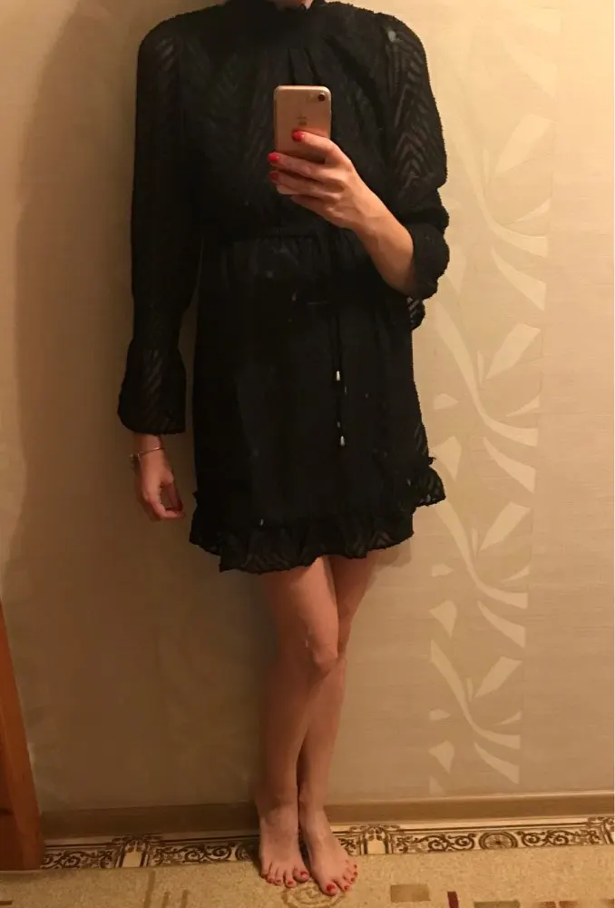 The order came quickly enough. Packaging is a normal package. I bought for 1096,70 rubles. The dress is excellent!!!. This is love and help for every day! At its 85-65-96 and height 154 cm chose the size s. the village is excellent! Both in size and height. Color saturated black. The fabric is gentle, shines through. But on the chest it goes double layer, and below there is a skirt. The back shines through. Therefore, you need either body or black underwear. Very versatile dress. You can pick up any jewelry, but on ribbons white accessories, so everything will not work. Well, or if desired, they can be removed. Definitely recommend!! I did not communicate with the store.