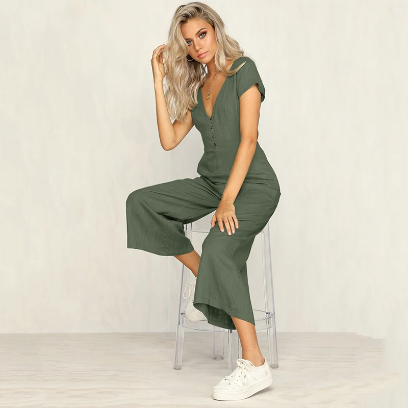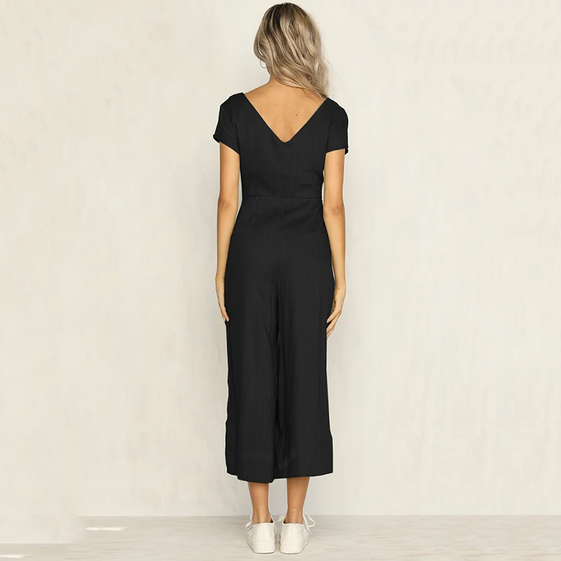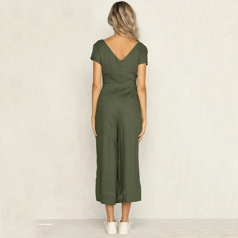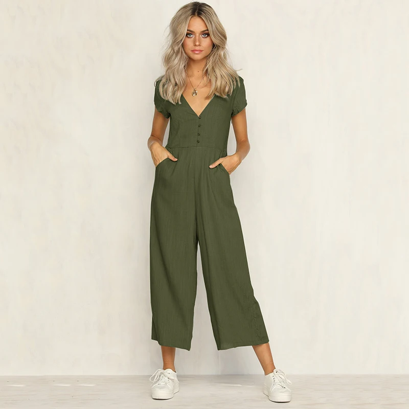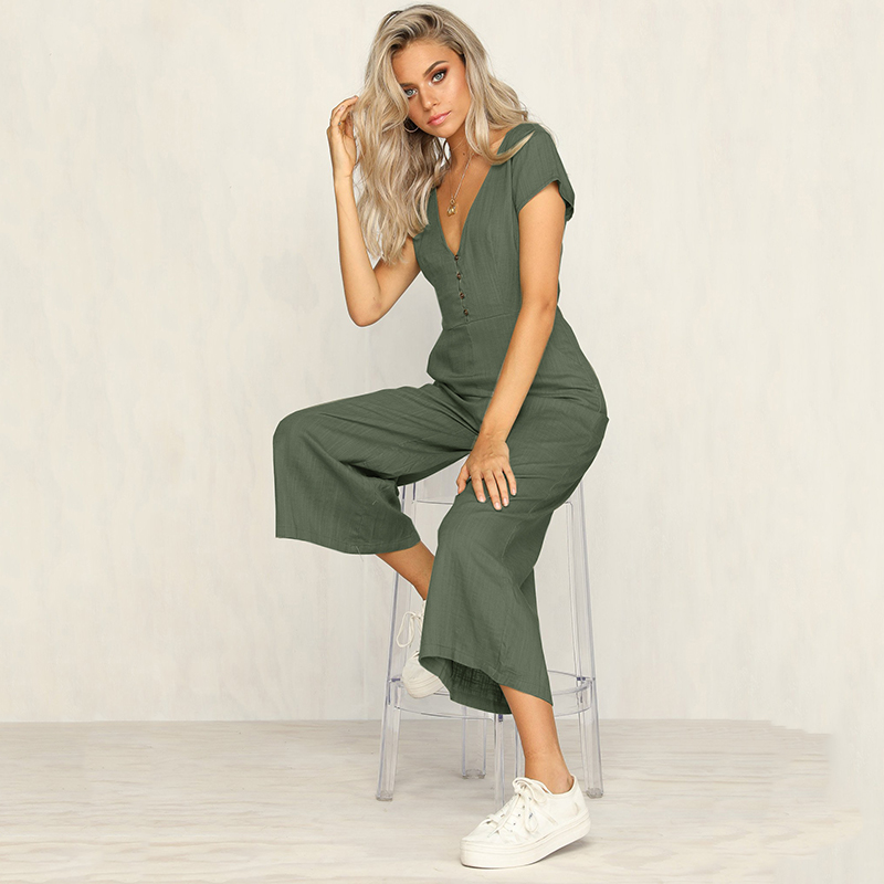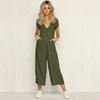 FREE SHIPPING Casual V Neck Simple Button Short Sleeve Jumpsuits JKP1468