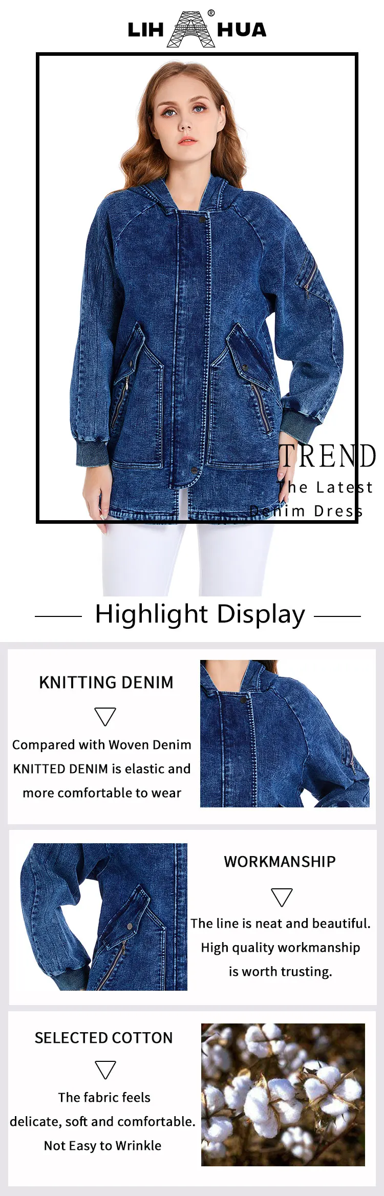 FREE SHIPPING Casual Women Plus Size Denim Jacket High Elasticity Hoodie With Pocket JKP6109