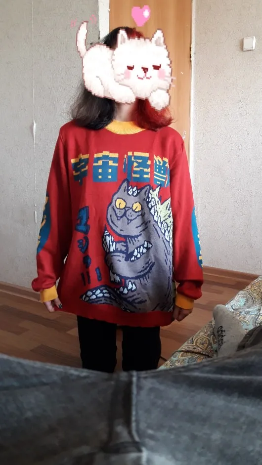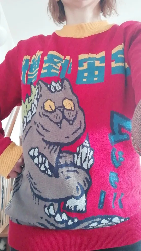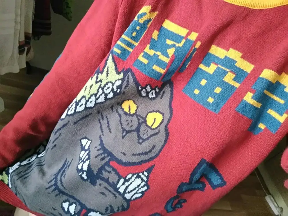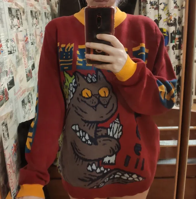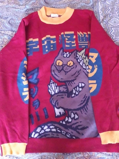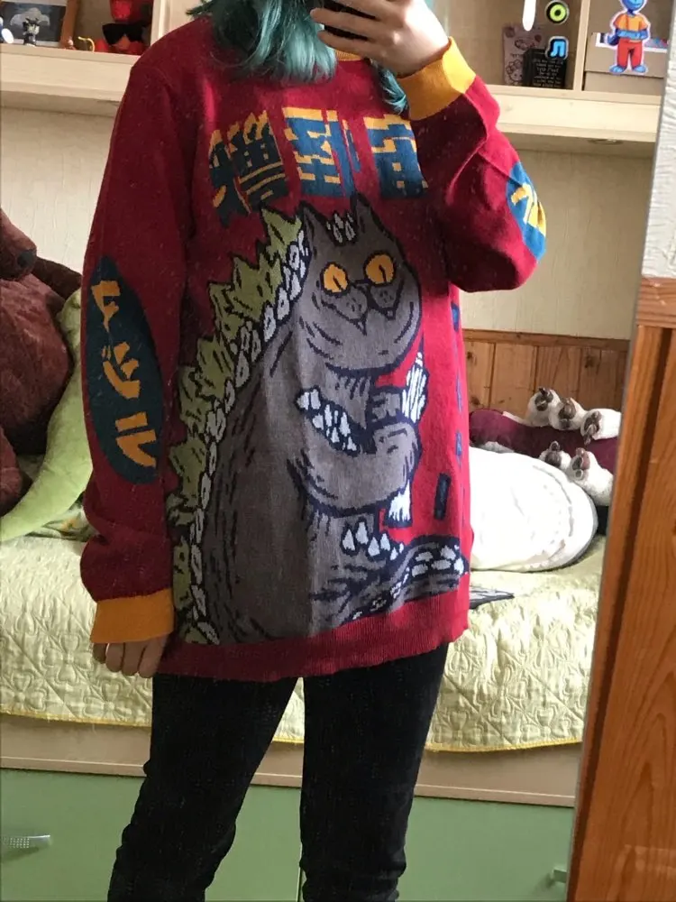 FREE SHIPPING Cat Godzilla Sweatshirt Knitted JKP4380