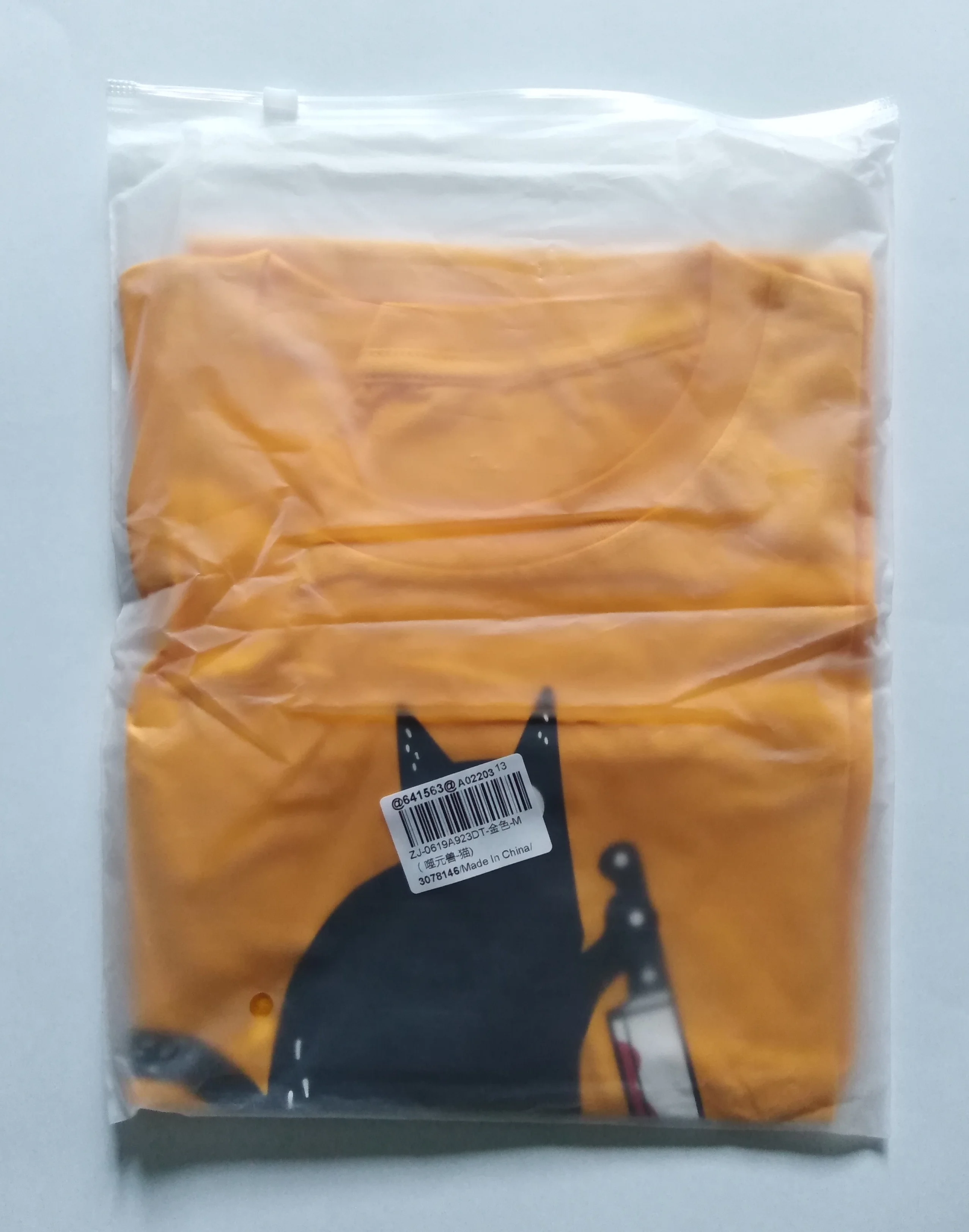 T-shirt came in a separate bag. The fabric is bright, pleasant to the touch. Printing the picture looks good, but until I tried to wash, I do not know how it will behave.