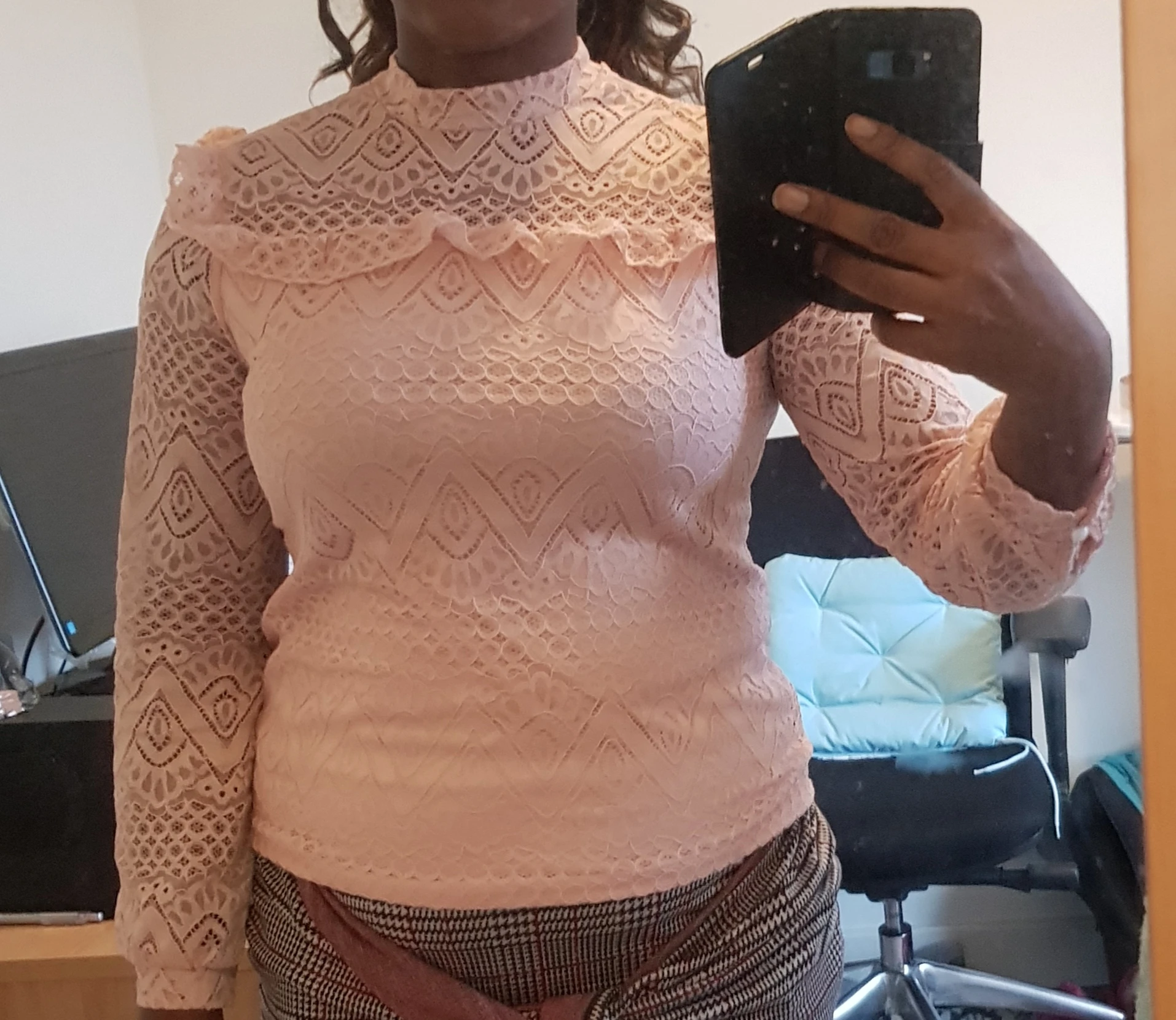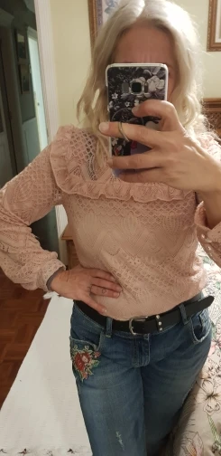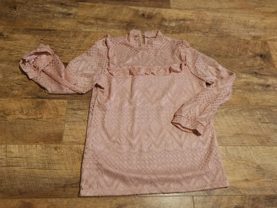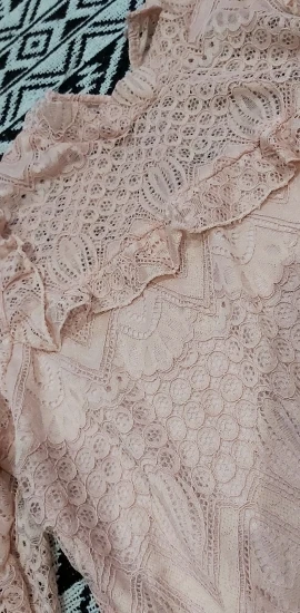 Blouse has more pink color does not look like the picture is lace transparent