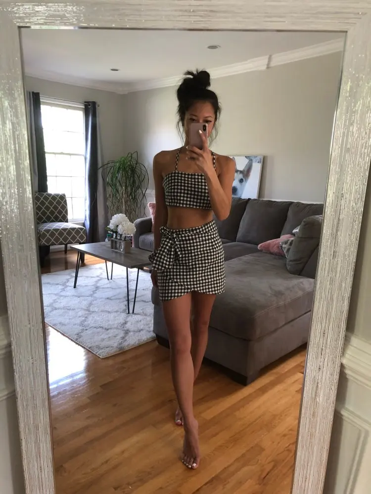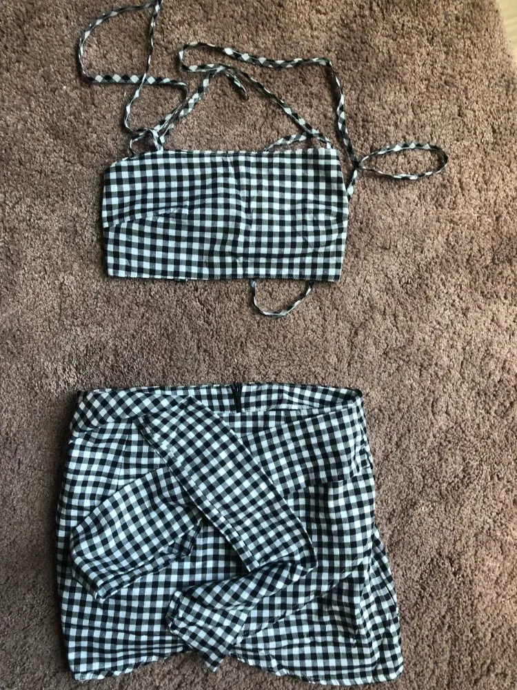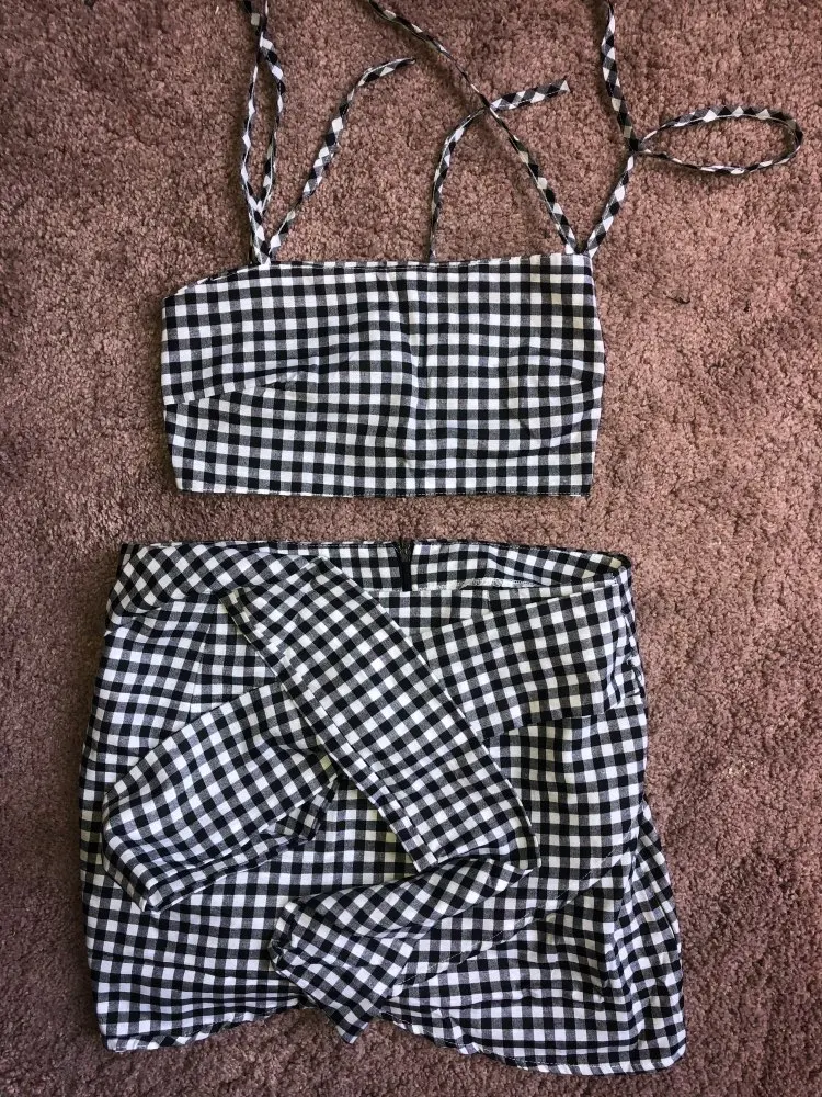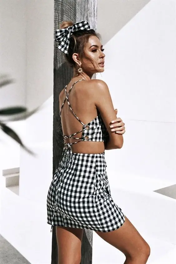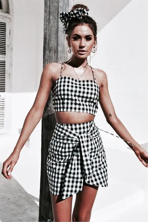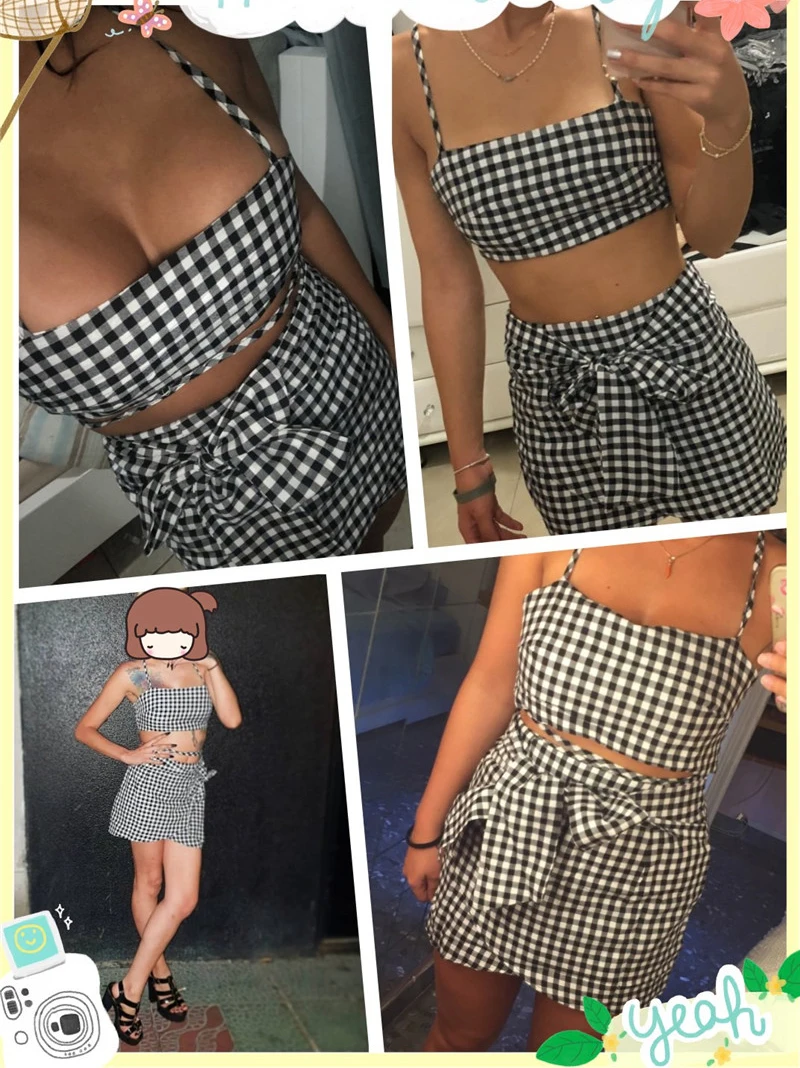 FREE SHIPPING Checkerboard 2 Piece Set Bodycon Skirt Crop Top Off Shoulder Tank Summer Two Piece Set Bandge Gingham Mini Skirt JKP1724