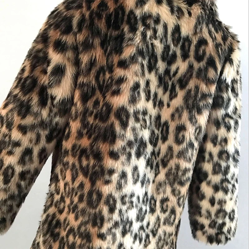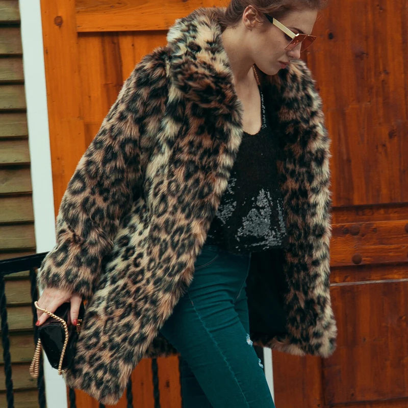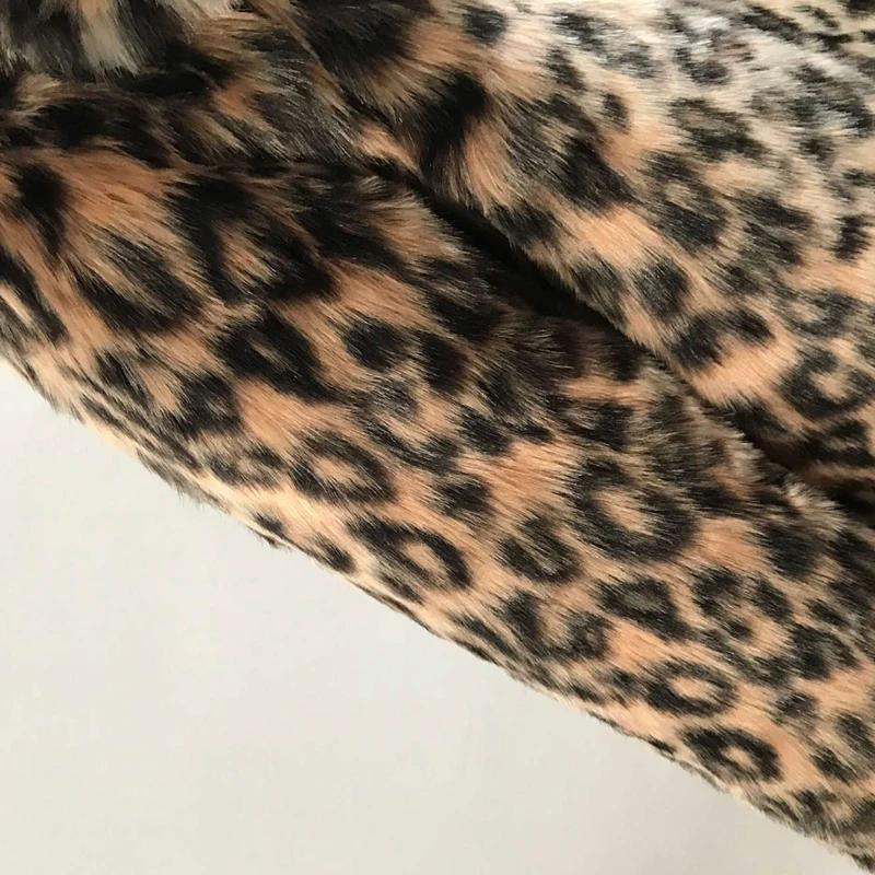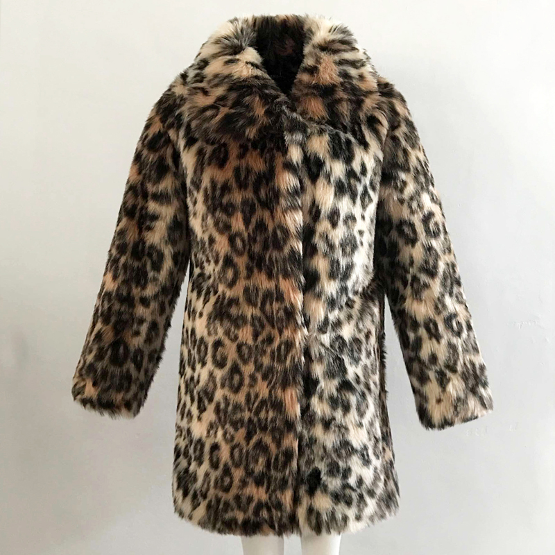 FREE SHIPPING Chic Womens Leopard Faux Fur Coat Winter Thicken Warm Long Sleeve Slim Fur Coat Outerwear Elegant Trench Overcoats JKP2923