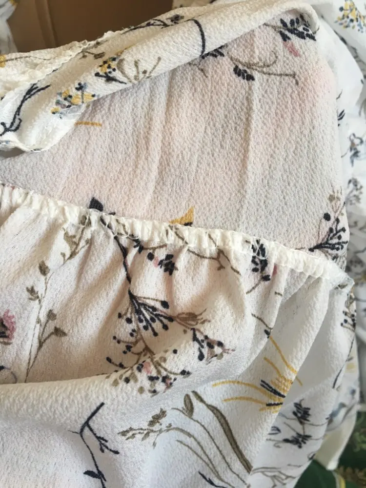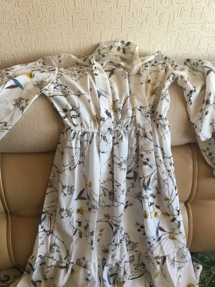 The store put a gift-gum for hair. I really liked the dress. Feminine and elegant. The seams are neat, even. Threads do not stick out, no smell. In general, i liked it very much. From the negative: strongly shines through and electrified (quite predictable for chiffon). You will have to mess with the selection of linen/combination, because even a dark beige is visible and seems dirty. The rubber band is tight (if the chest is large, it is better to relax, but how to do it has not yet come up, because the elastic band is stitched along the entire length). The fabric is light, pleasant to the body. The parcel came quickly, traced. Recommend product and seller!
