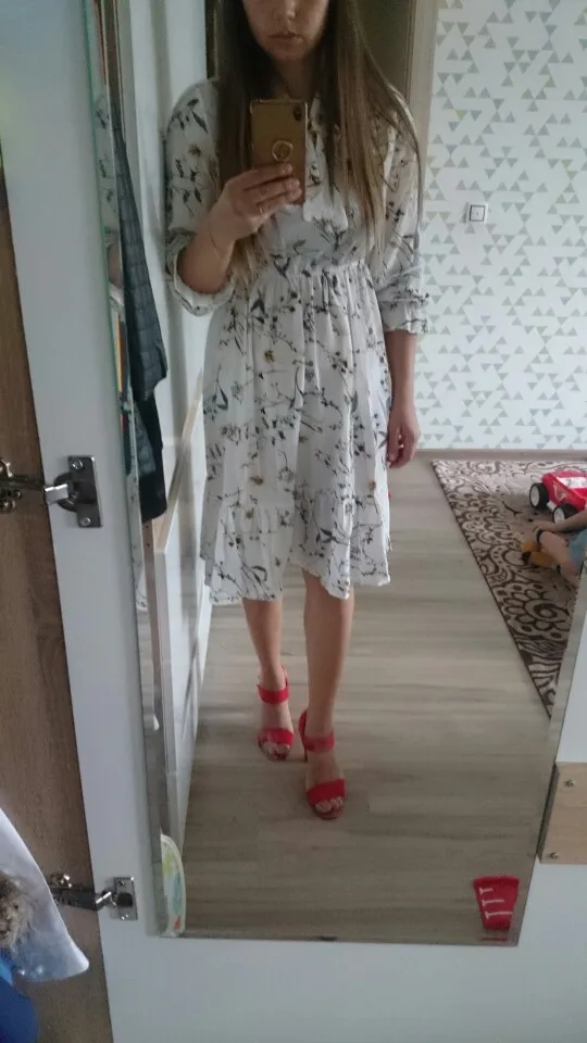 Dress very pretty, little cieńki material and slightly prześwituje. Size S fit for me (165cm and 52 kg)
