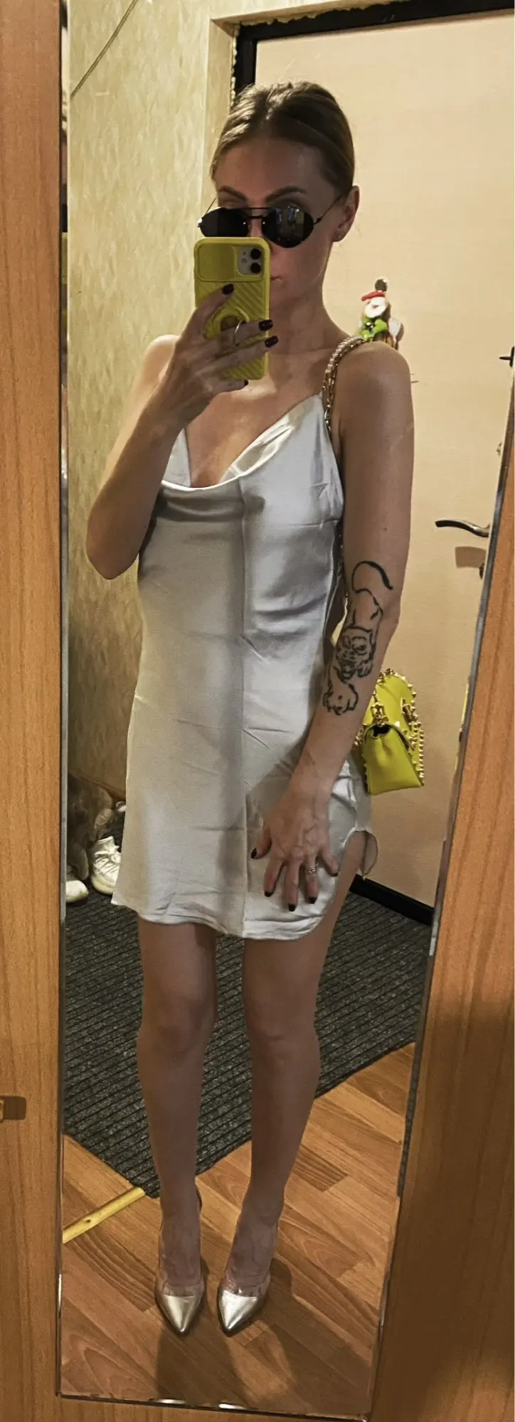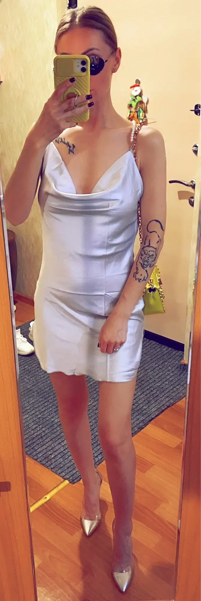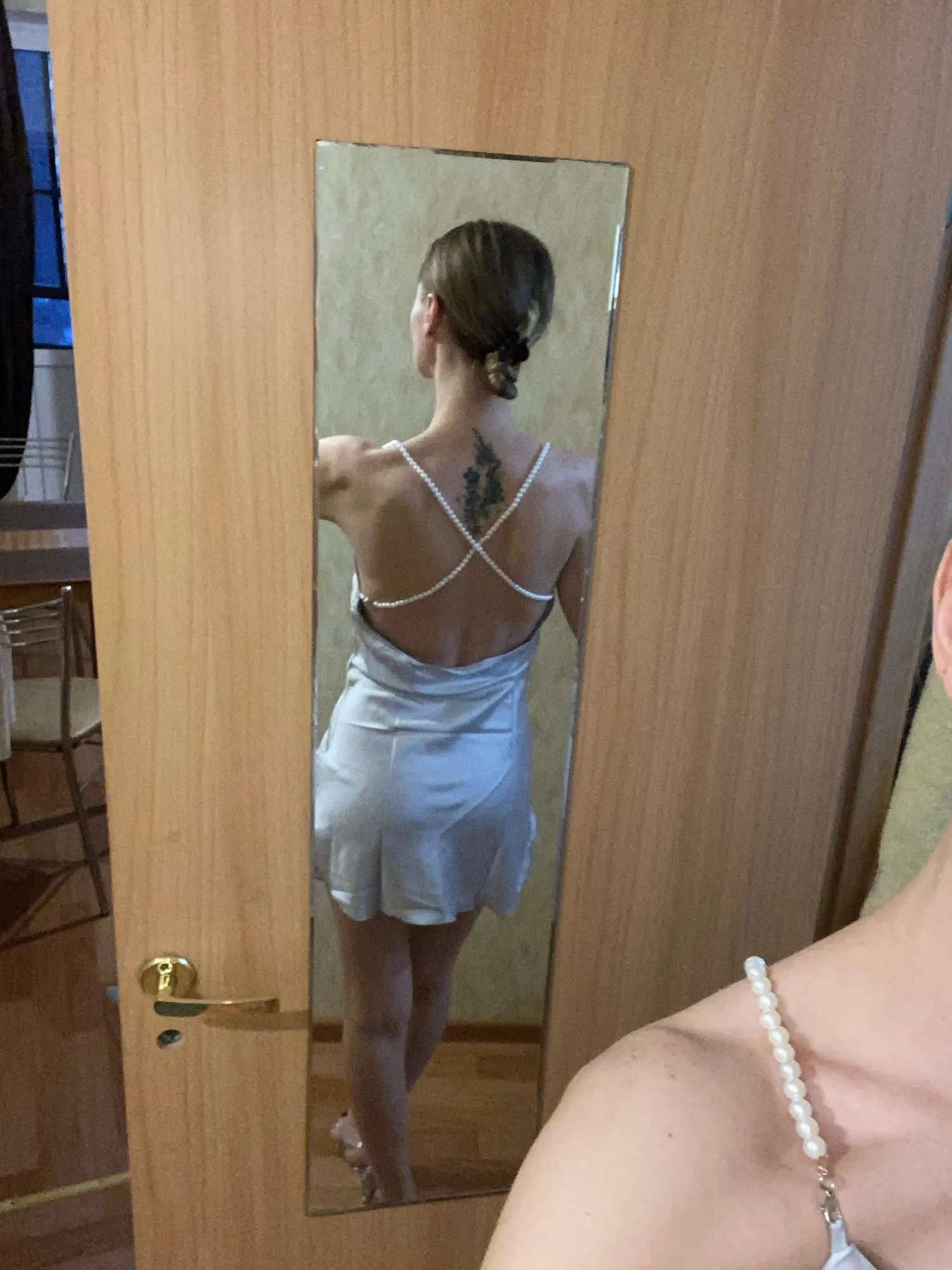 The dress is chic, looks very impressive. ⠀Size M, on my parameters 83-65-89 came up perfectly. On the photo of the store of the dress at the waist, I like the same as the village on me) On height 171, the length is critical, especially on the sides where the cuts. The straps are made in the form of pearls, removable, convenient to wear a dress and wash. The dress is made under the satin, but the fabric is thin. Delivery to Ukraine 3 weeks
