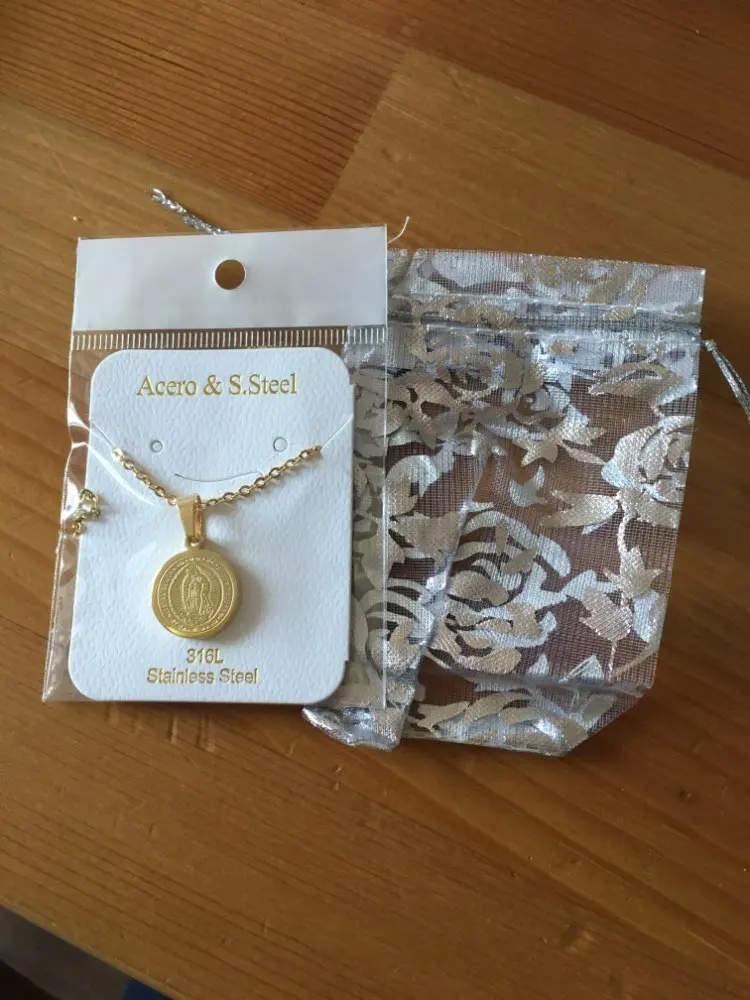 very beautiful chain pendant small gift bag put more store. satisfied order. thank you!