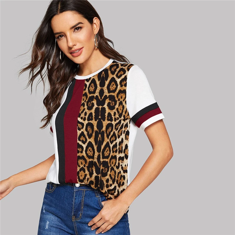 T-shirt i really liked. At a height of 160 weight 53 kg 84-69-93 freely sat down as i wanted (took the size s), a t-shirt made of pleasant fabric, cotton is in my opinion 60-70%, leopard insert synthetics
