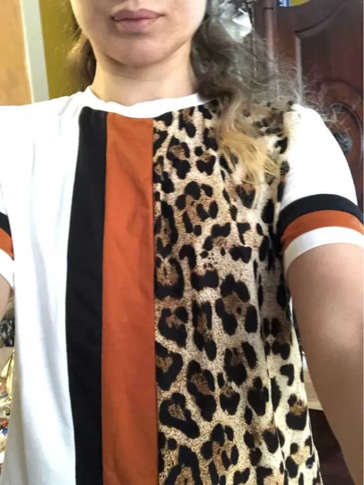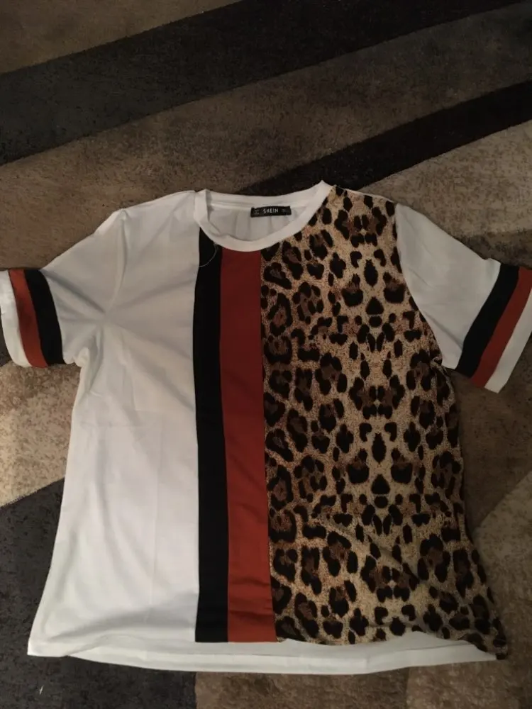 FREE SHIPPING Color Block Cut-and-Sew Leopard Panel Top Short Sleeve O-Neck Casual T Shirt Women 2019 Summer Leisure Ladies Tshirt Tops JKP1938