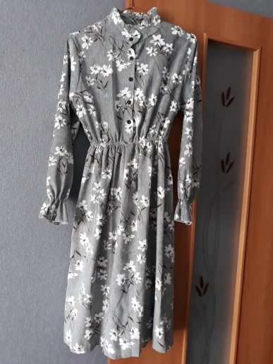 The order was made on 30.05.2019, courier sdek brought 25.06 (korolev, mo), the track was tracked on their site. The dress is cool, the fabric is really a type of corduroy that, the quality of the norms, goes, like, in size, but for my height 156 cm is quite long, below the knees. Measurements i attach from the shoulder to the hem and width at the waist, as well as the length of the inner part of the sleeve of my size. I'll try on the other day and add a review