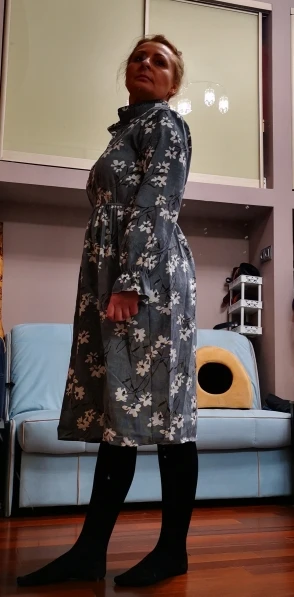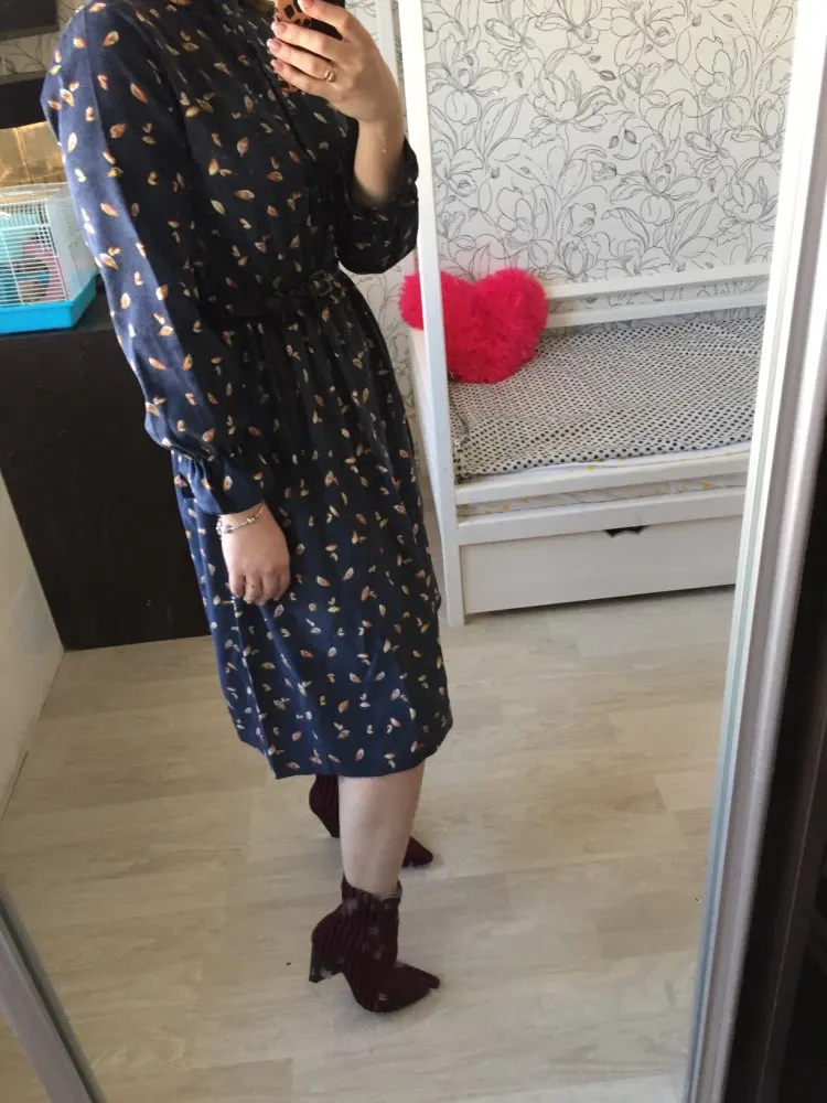 A good dress for a cool season, the height of 164 is a little short sleeve, but it does not spoil. I was mistaken with the coloring, but this is also nothing) the parcel was long at the customs office, the delivery took almost a month to Minsk. The store put an elastic band as a gift. On the chest more than 100 cm it is better to order the size L.
