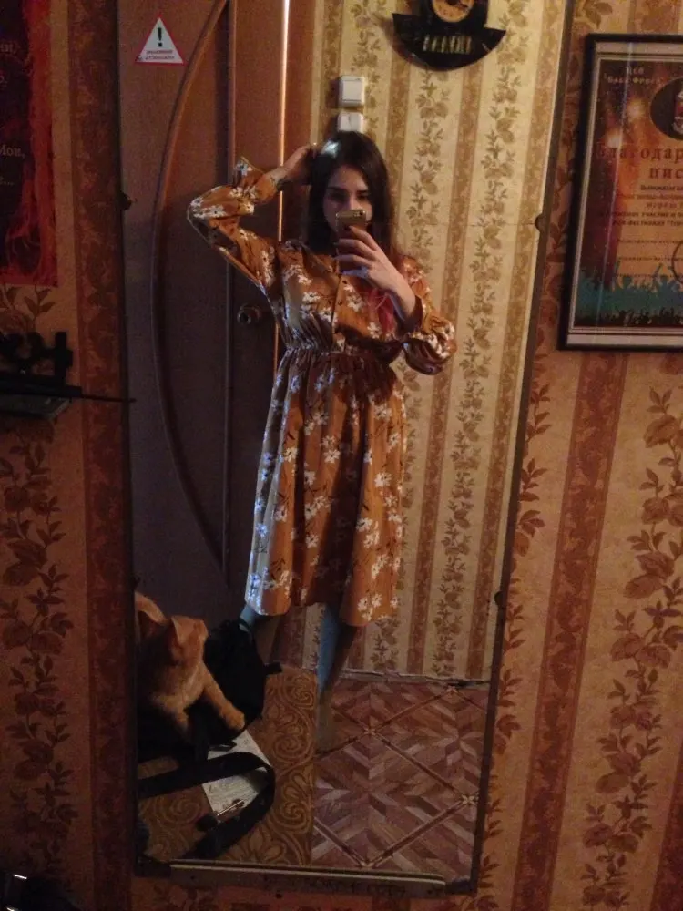 The best dress I had. In it absolutely everything is great! The fabric is soft and high-quality, sewn well, not a single jamb did not notice in this dress. I love him, and my cat too! Thanks to the store for the fast shipment. I highly recommend!)))