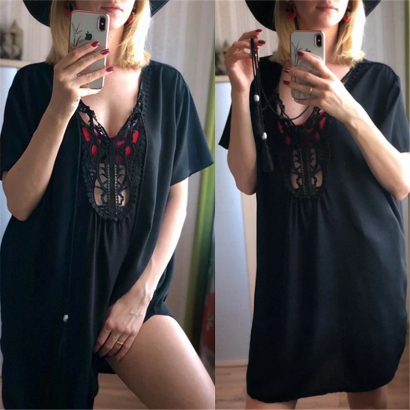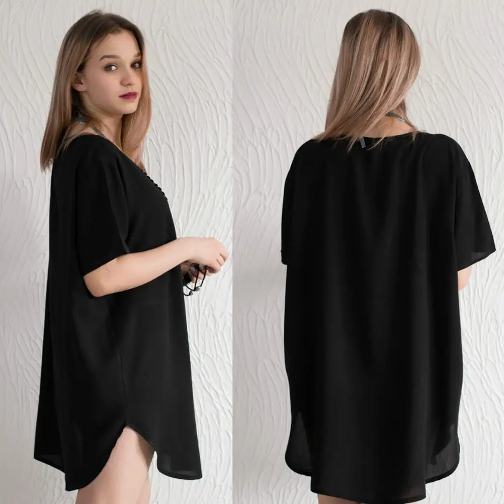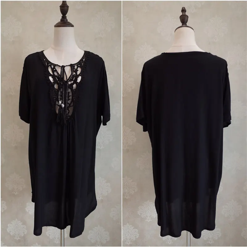An excellent beach tunic made of 100% cotton, so, despite the black color, it will not be hot in the summer. On the parameters 88-66-89 and the growth of 163 cm, the single size of the villages is free, it will suit the parameters much more than mine. Quality is good, as with everything that i took in this store!