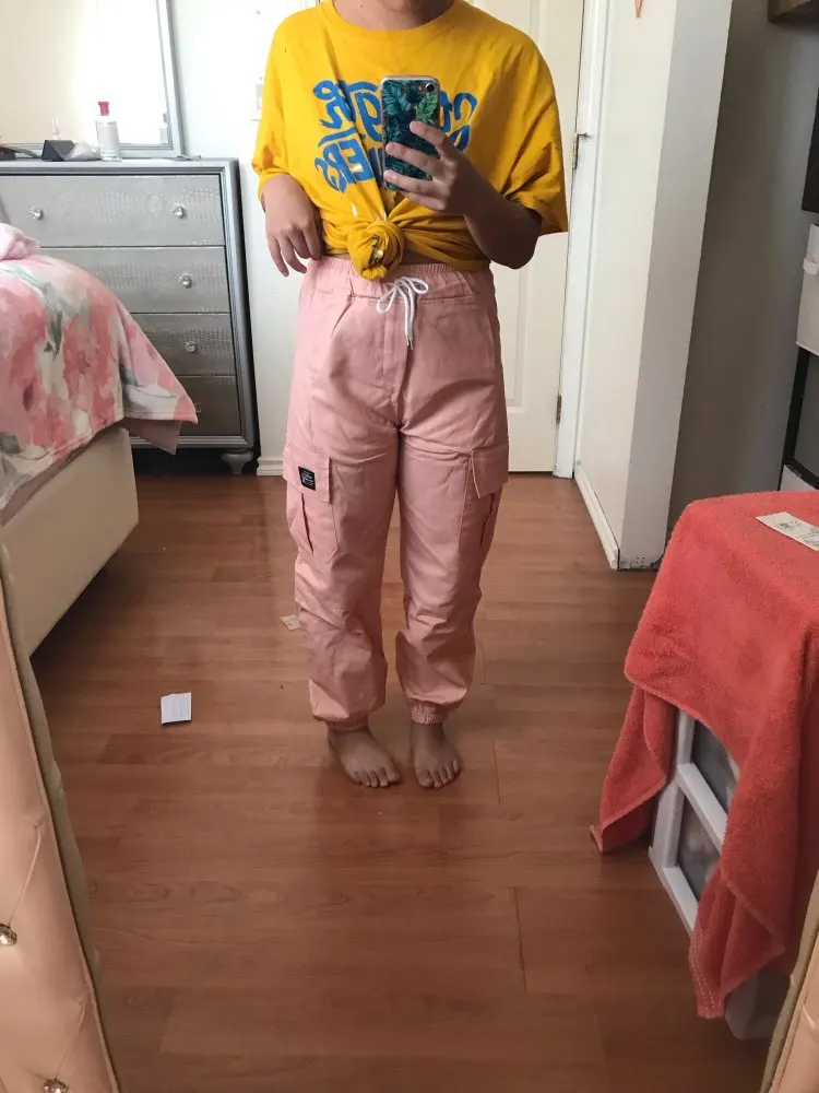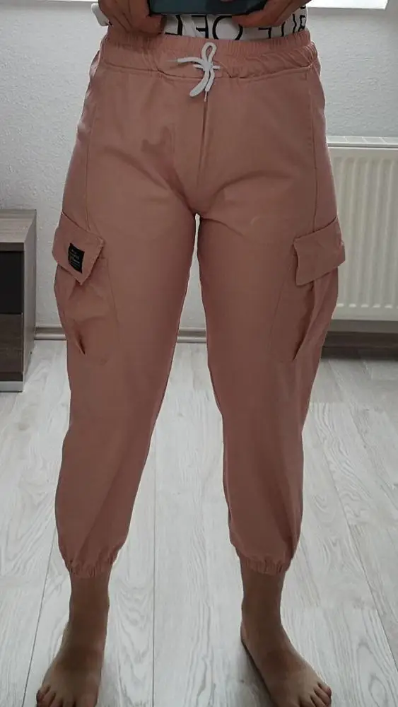 Loveee these pants! Super cute and comfy. Fabric is pretty soft and the color is as pictured. Also appreciated the kind message included. I got a M and they are true to US sizing. I’m about 130lbs and 5’4