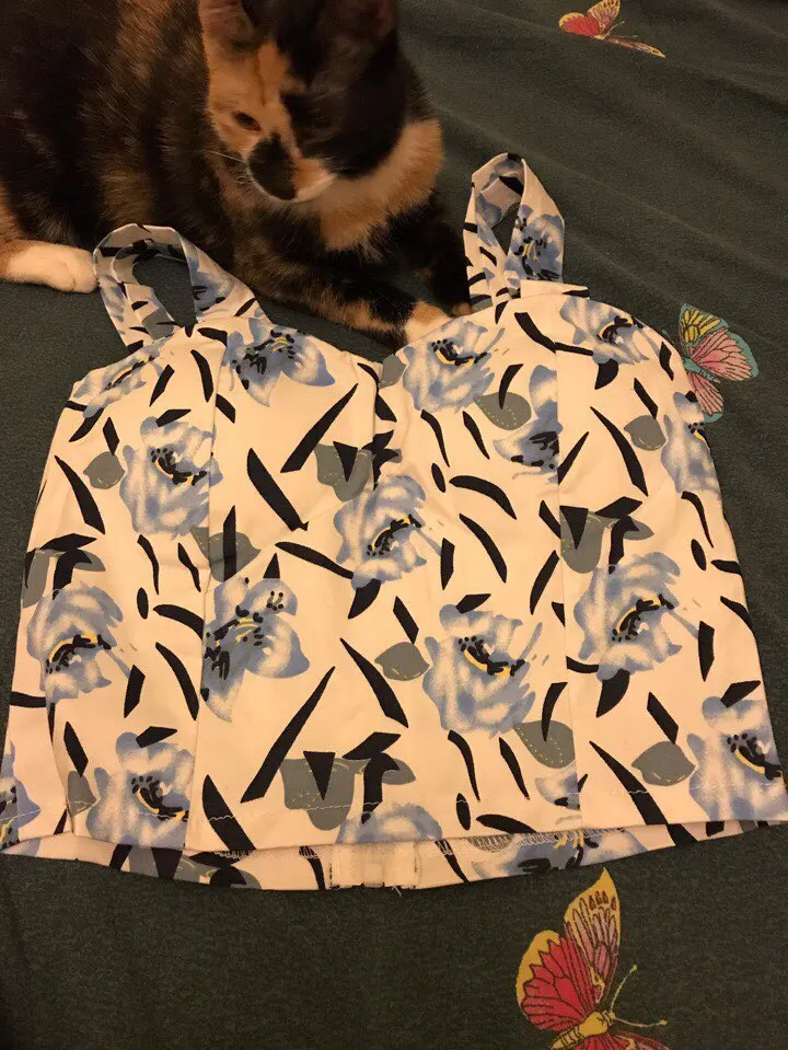 Cool top. The cat has. The size approached perfectly. Cups are a little confused, and so everything is fine. Color matches, print too. Quality for china is pretty good. A nice little thing and for the summer will be the most it!