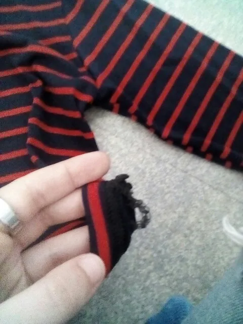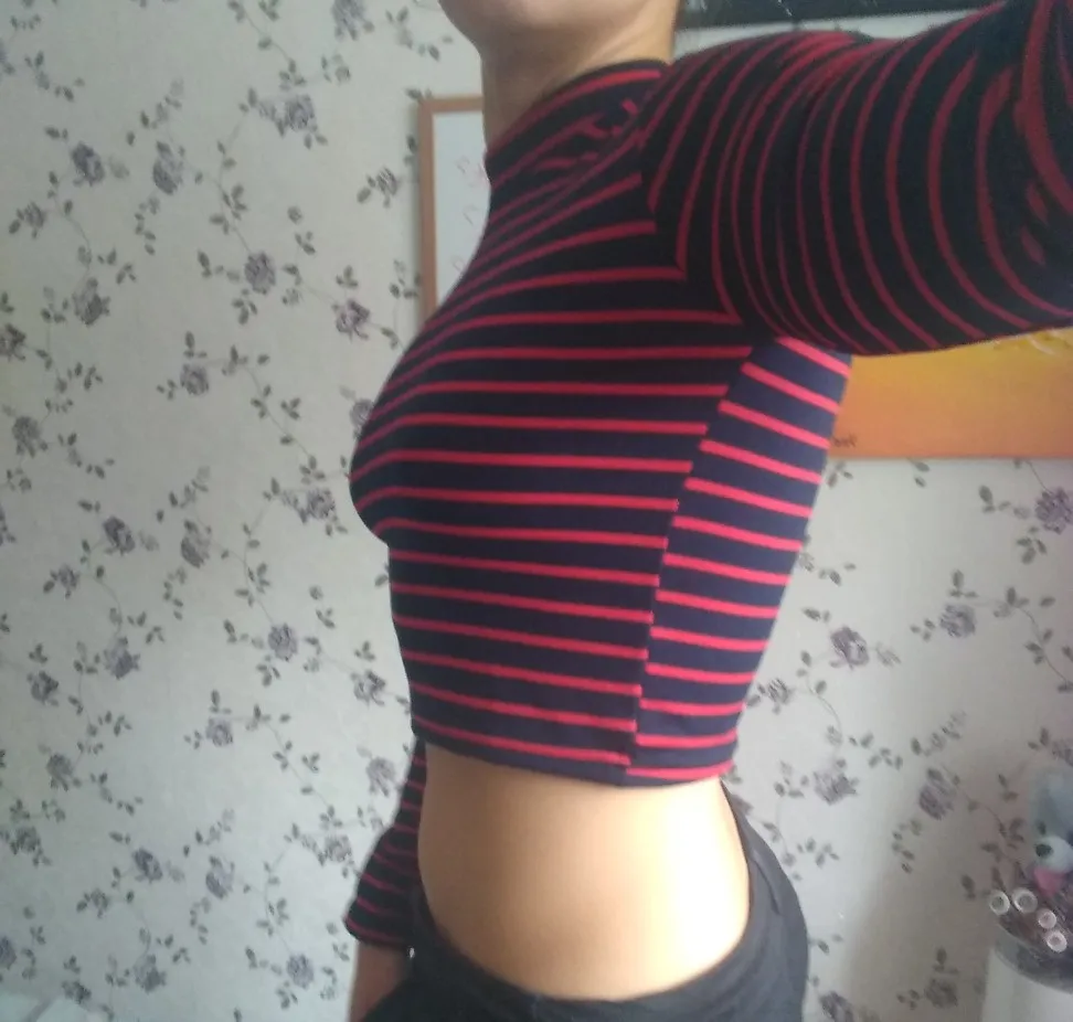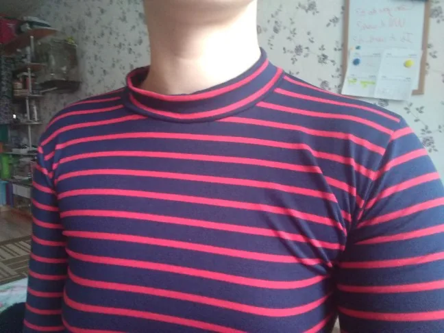 Delivery month. No tags, but to the touch polyester, tight. All seams are smooth, good. Length to the waist at a height of 167, 44 size (96-72) of the village is fine, stretched and even more. Sleeves are not tight, slightly loose, and so good.