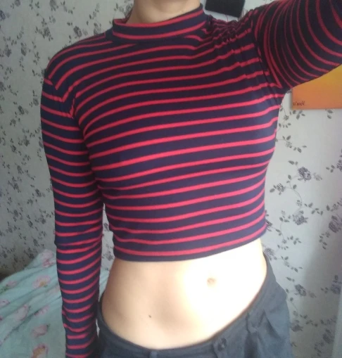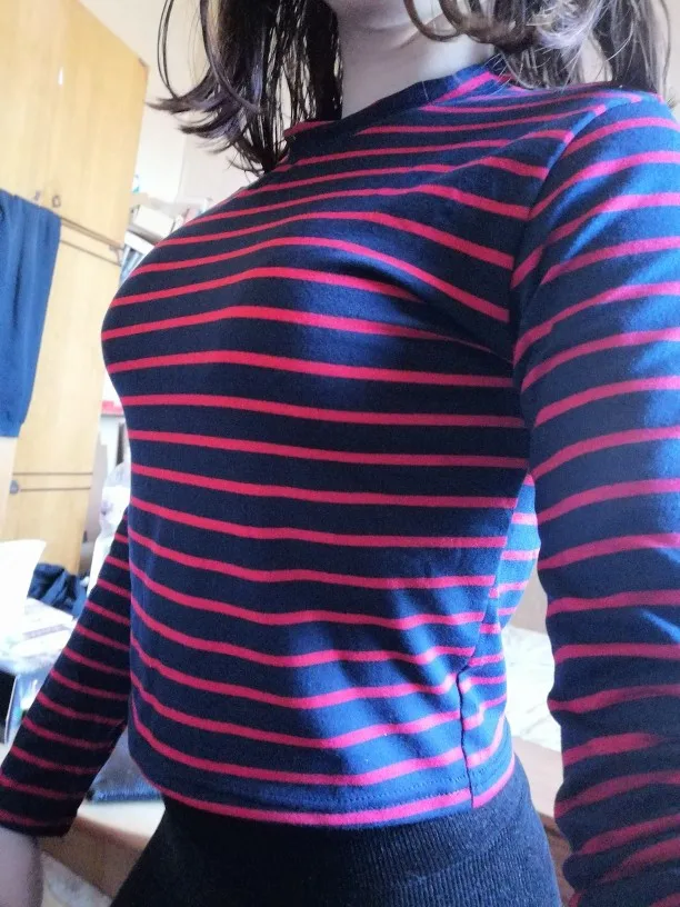 Really cute shirt.. my only complaint is that I thought it was black and red but it’s navy blue and red, but still really nice. Fabric is comfortable too.