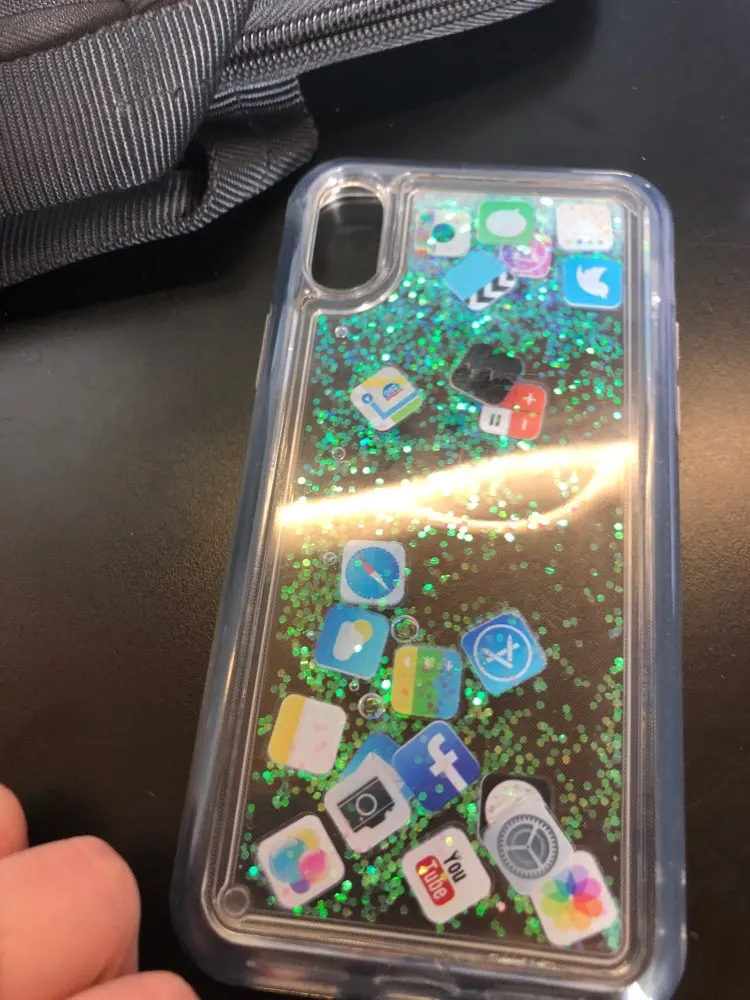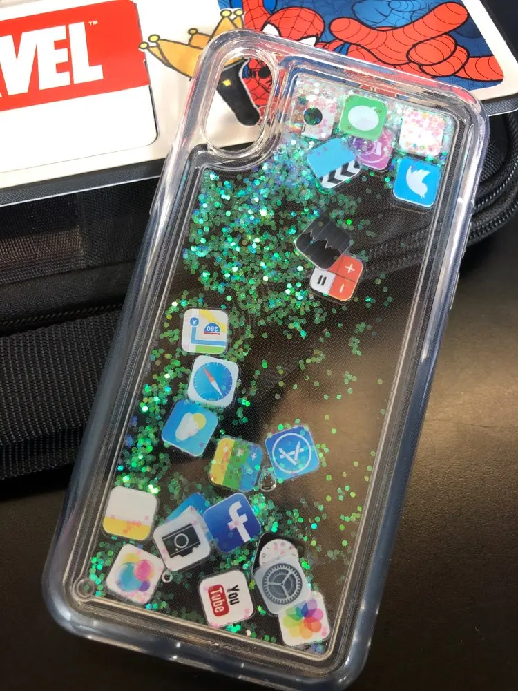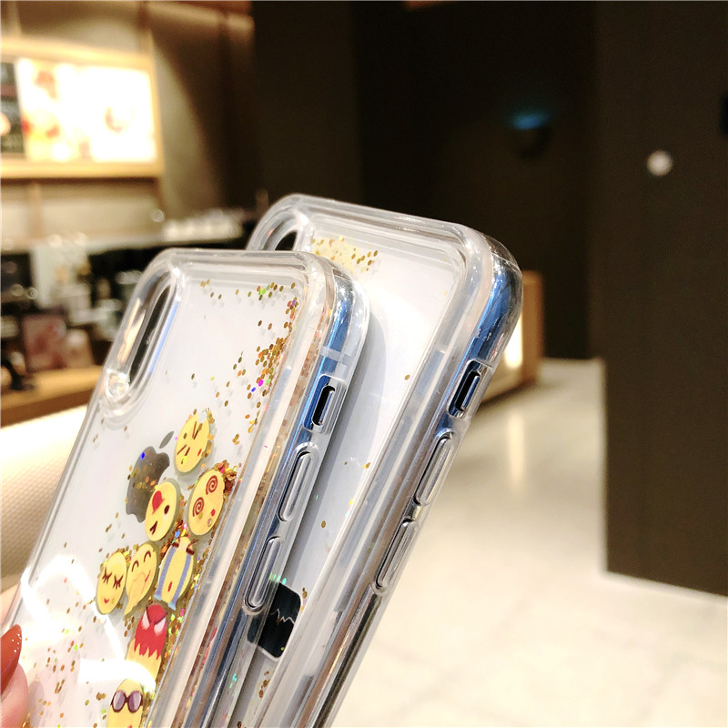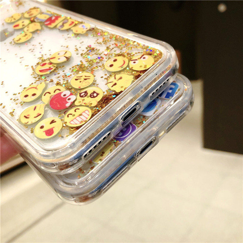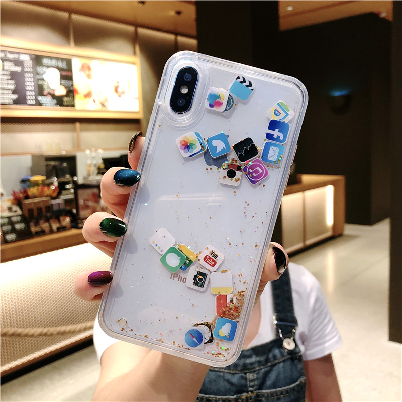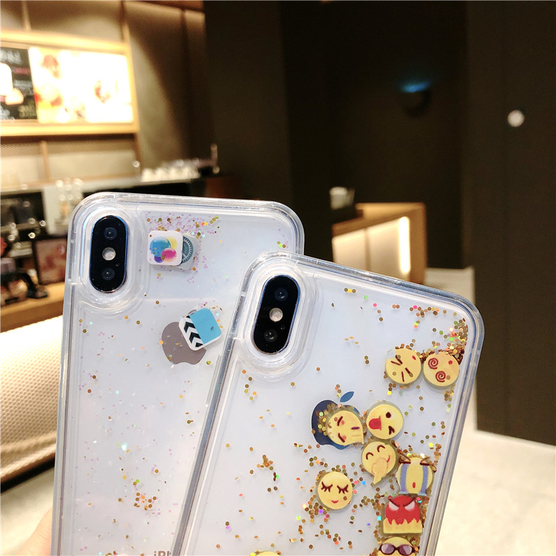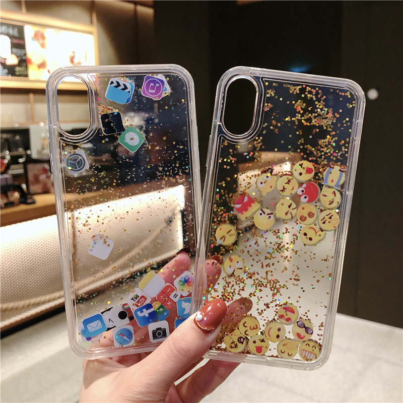 FREE SHIPPING Cute Apps Icon Emoji Liquid Glitter Quicksand Case for iPhone 6 6S 7 8 Plus Hard Cover For iPhone X XR XS Max JKP1530