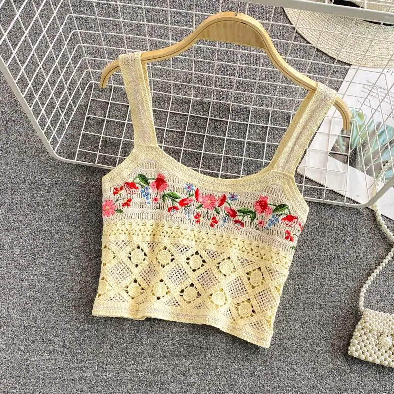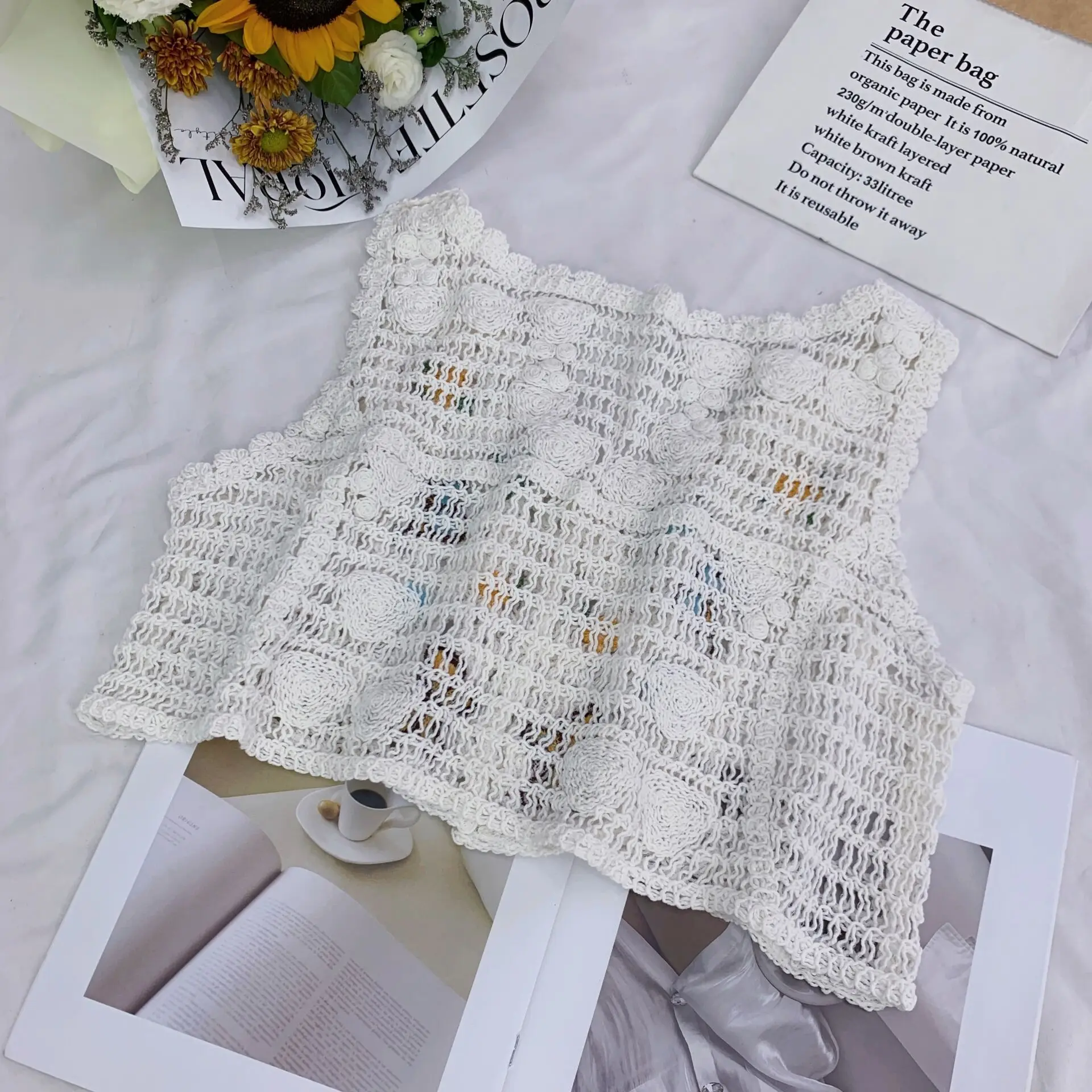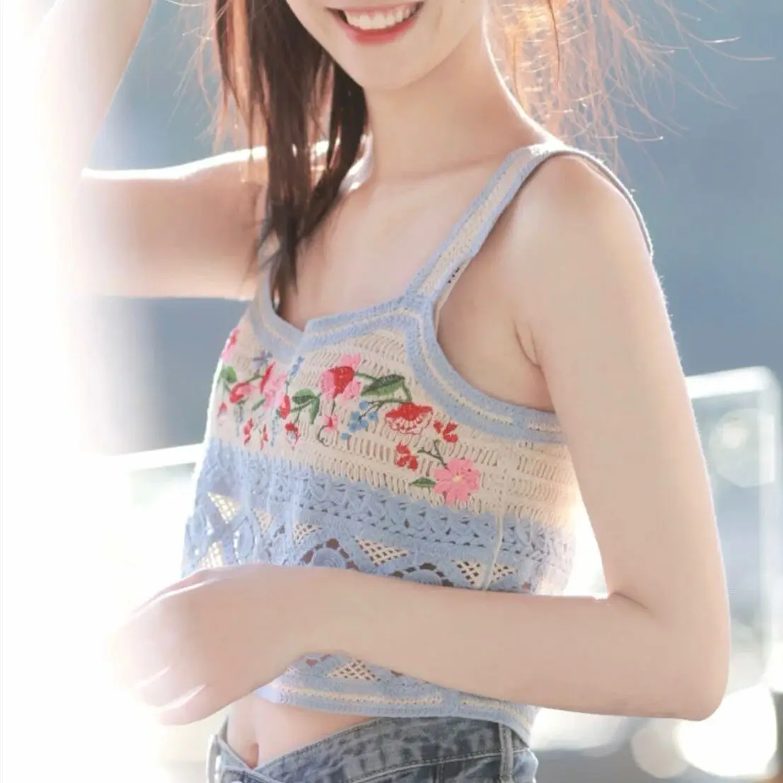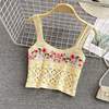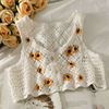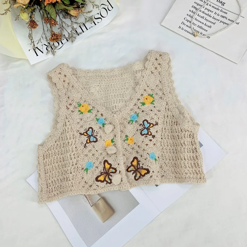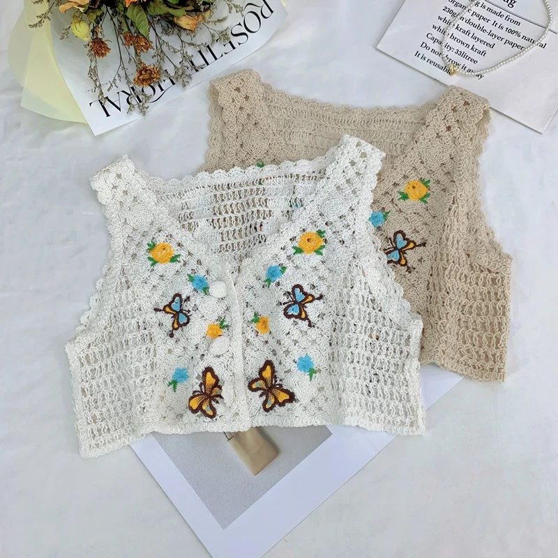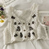 FREE SHIPPING Cute Fashion Design Outer Crop Cardigan Floral Embroidery Sleeveless JKP5168