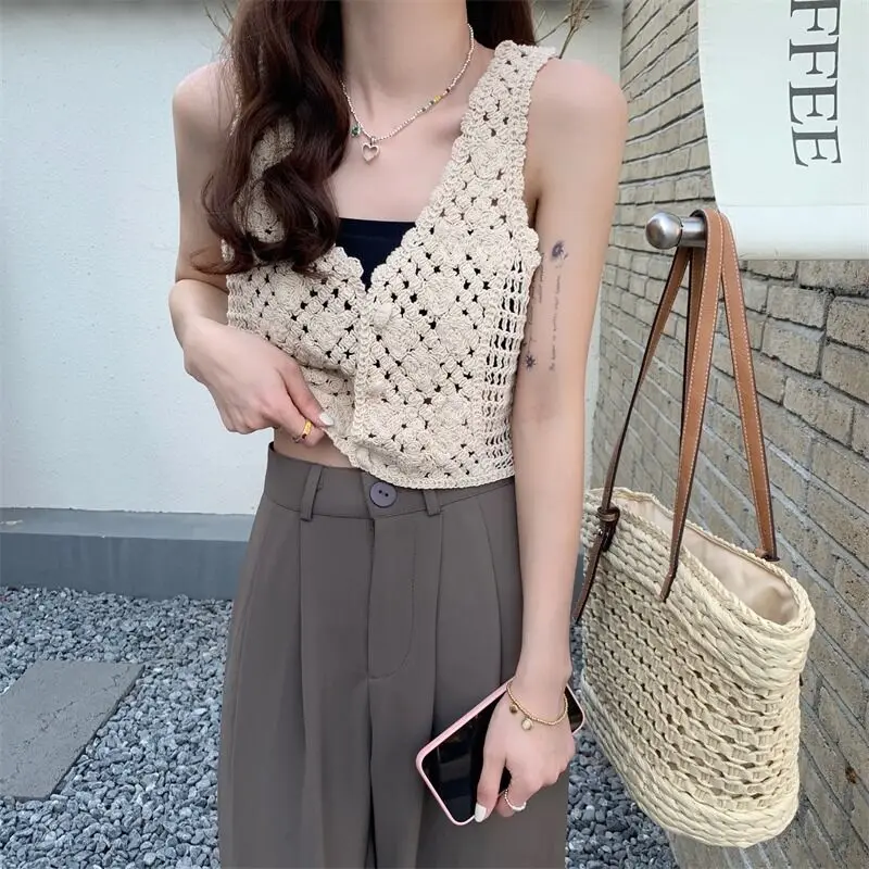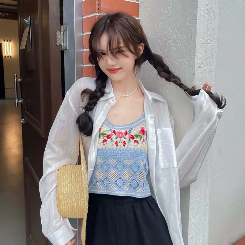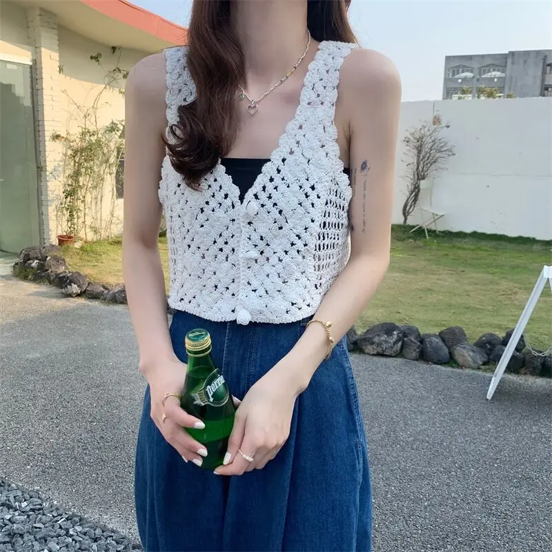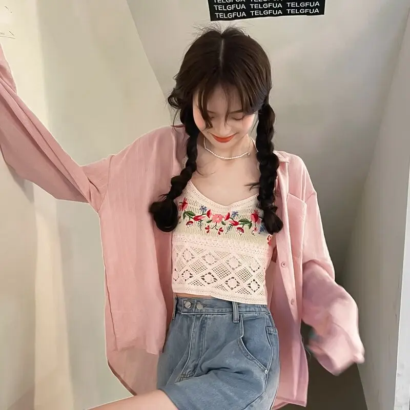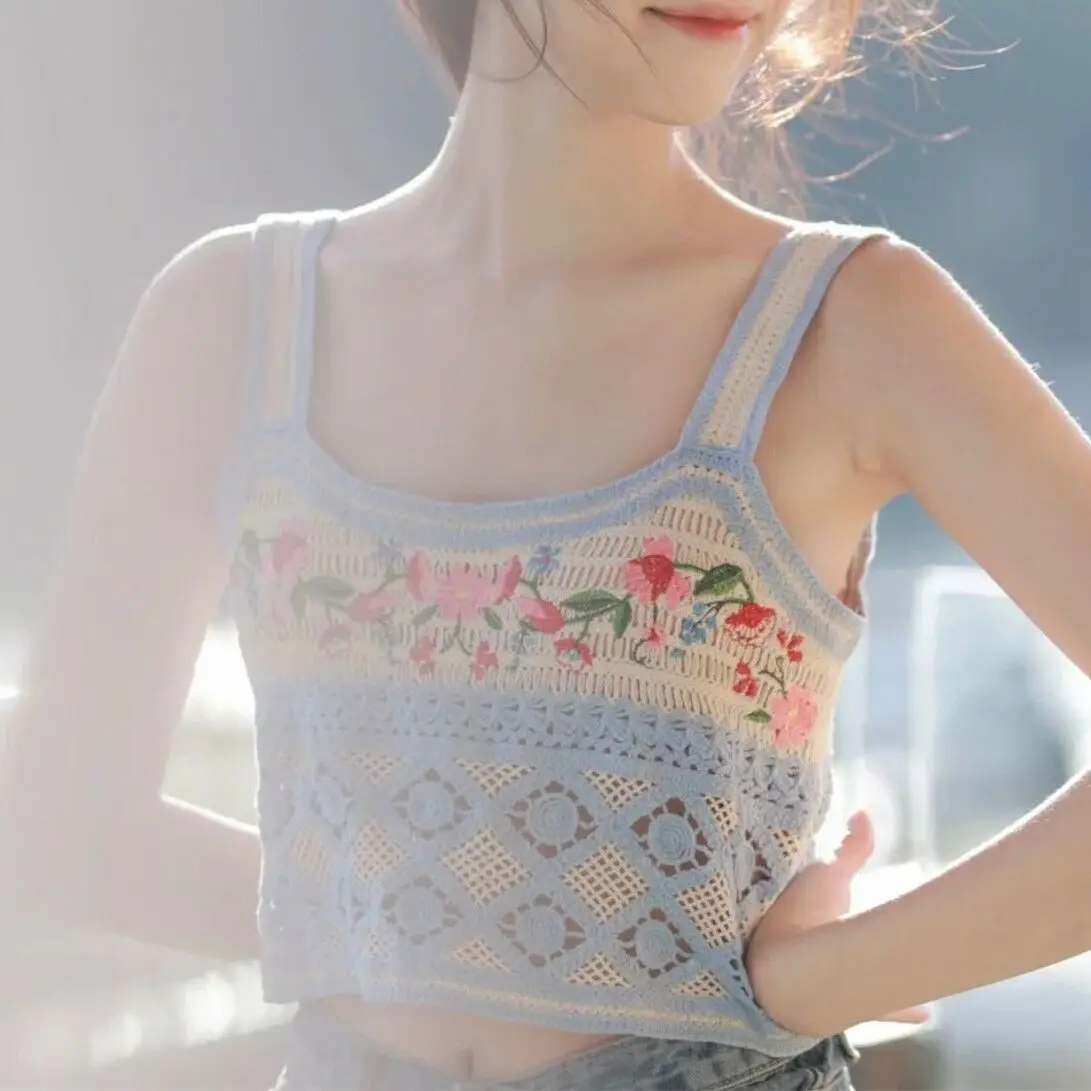 FREE SHIPPING Cute Fashion Design Outer Crop Cardigan Floral Embroidery Sleeveless JKP5168