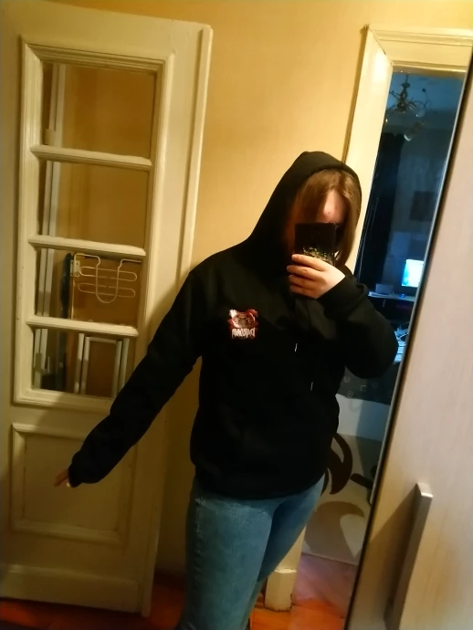 It reached less than, 2 weeks before the MSC, the track was tracked all the way. It came to the cash register five. Svitshot the size 42-44 sat like an oversize, pleasant to the body, the quality of the material is excellent. Fabric-fleece. Drawing on the back and chest is a sticker