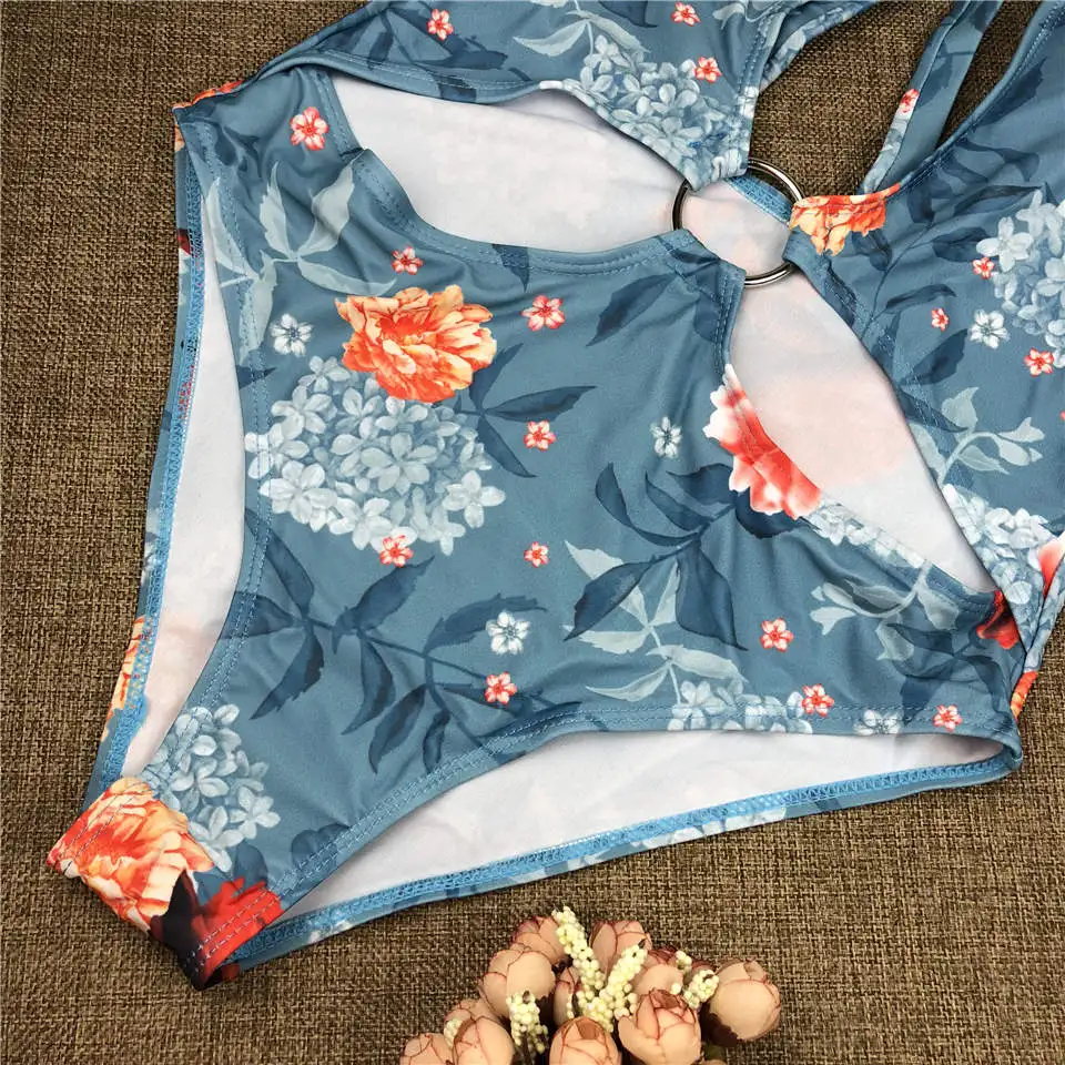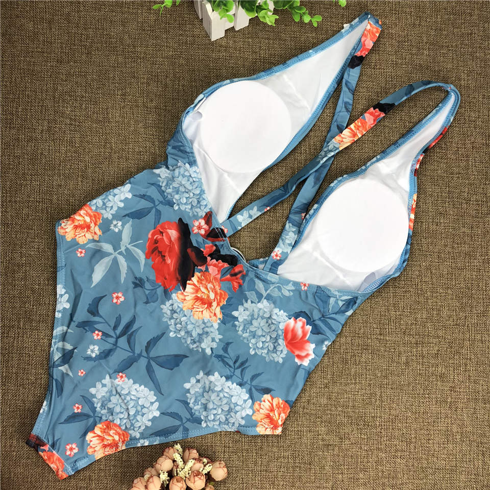 FREE SHIPPING Deep V Neck Swimsuit One Piece Bathing Suit Floral Swimwear Women Cut Out Monokini Sexy Trikini Summer Bodysuit Maillot JKP2409