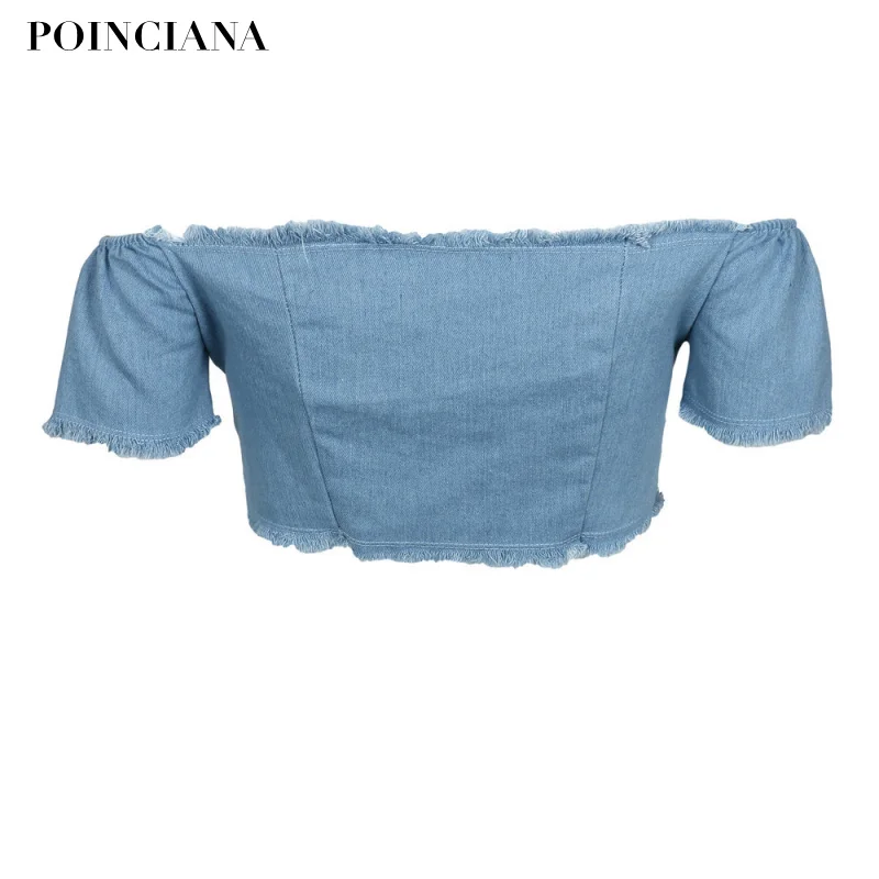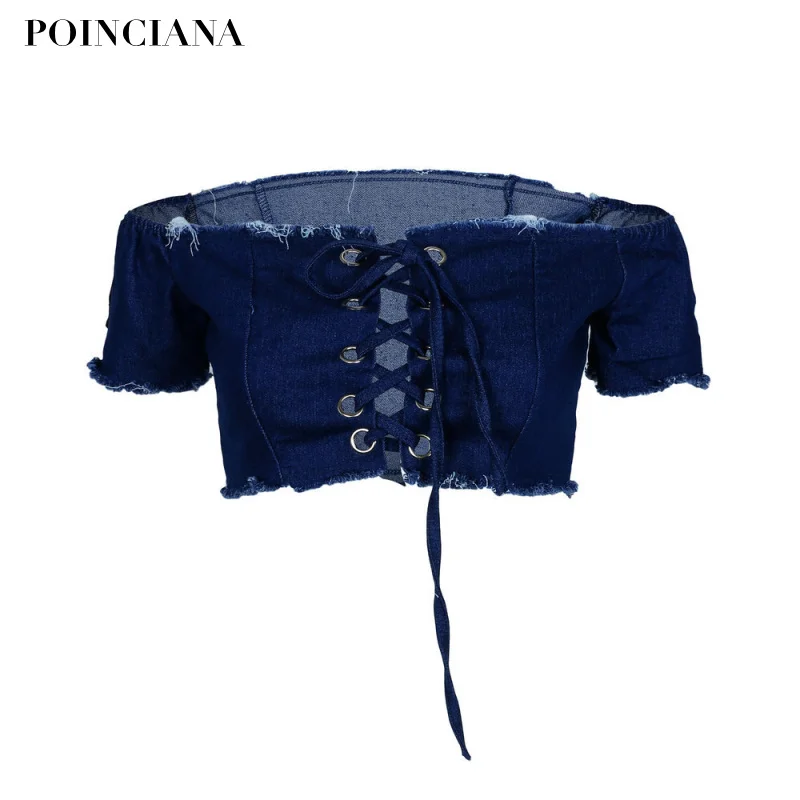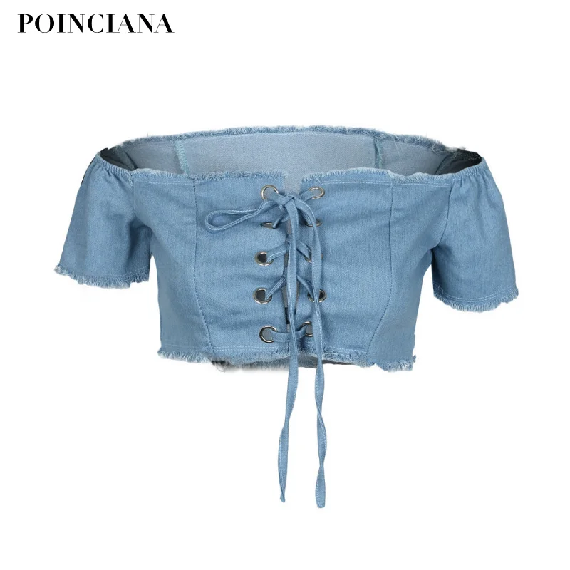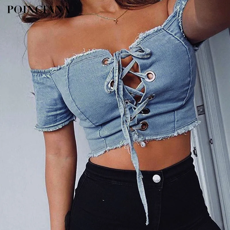 FREE SHIPPING Denim Blue T Shirt Crop Top Front Tied Up JKP1328