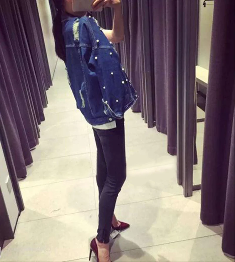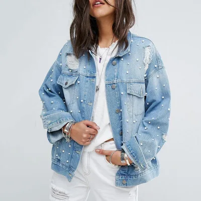 Love the jean pearl jacket strong Chemical bleach smell but let the jacket air out for 5 days smell will be almost gone