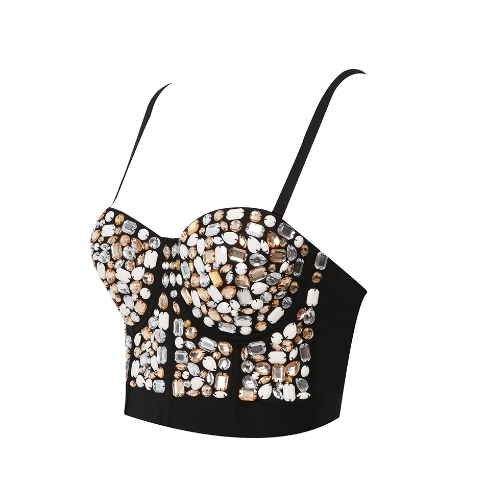 FREE SHIPPING Diamonds Nylon Bodycon Newest Sleeveless Crop Tops JKP1864