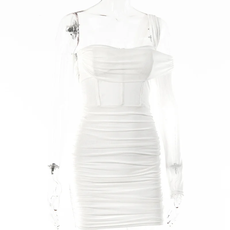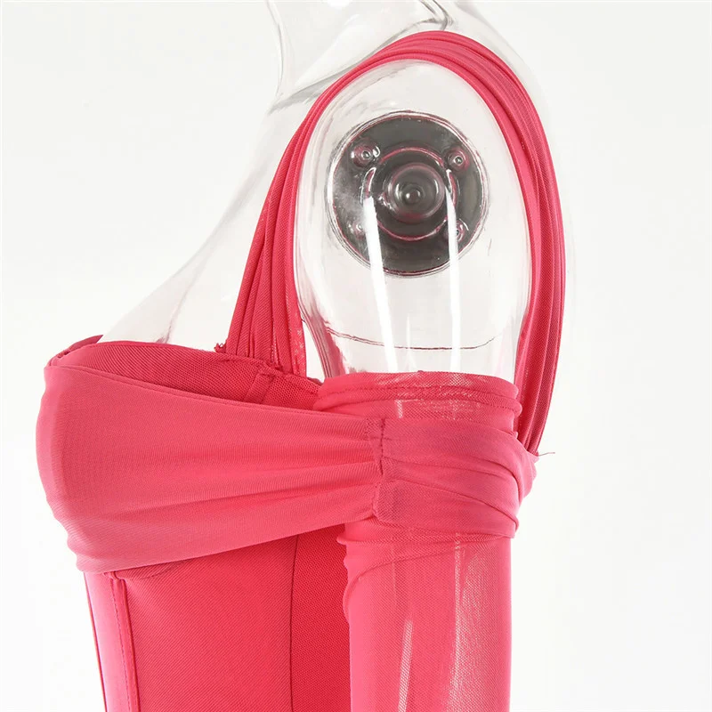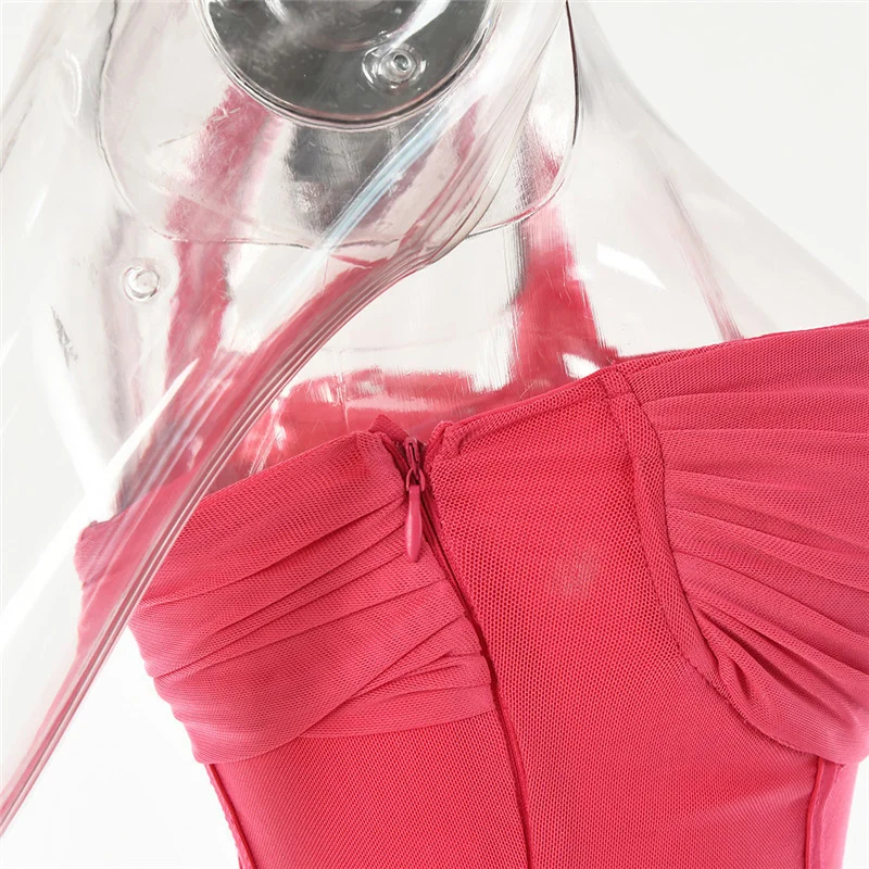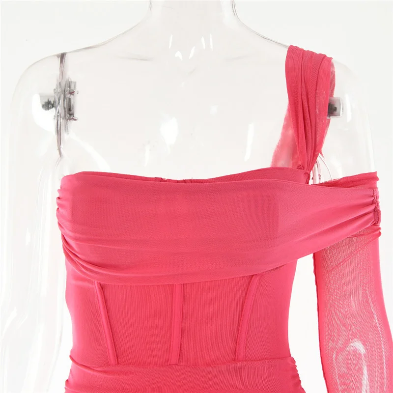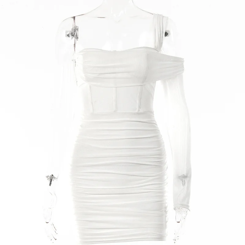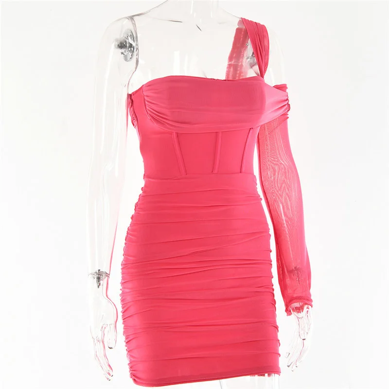 FREE SHIPPING Double Layer Mesh One Shoulder Zipper Mini Bodycon Dress JKP5887
