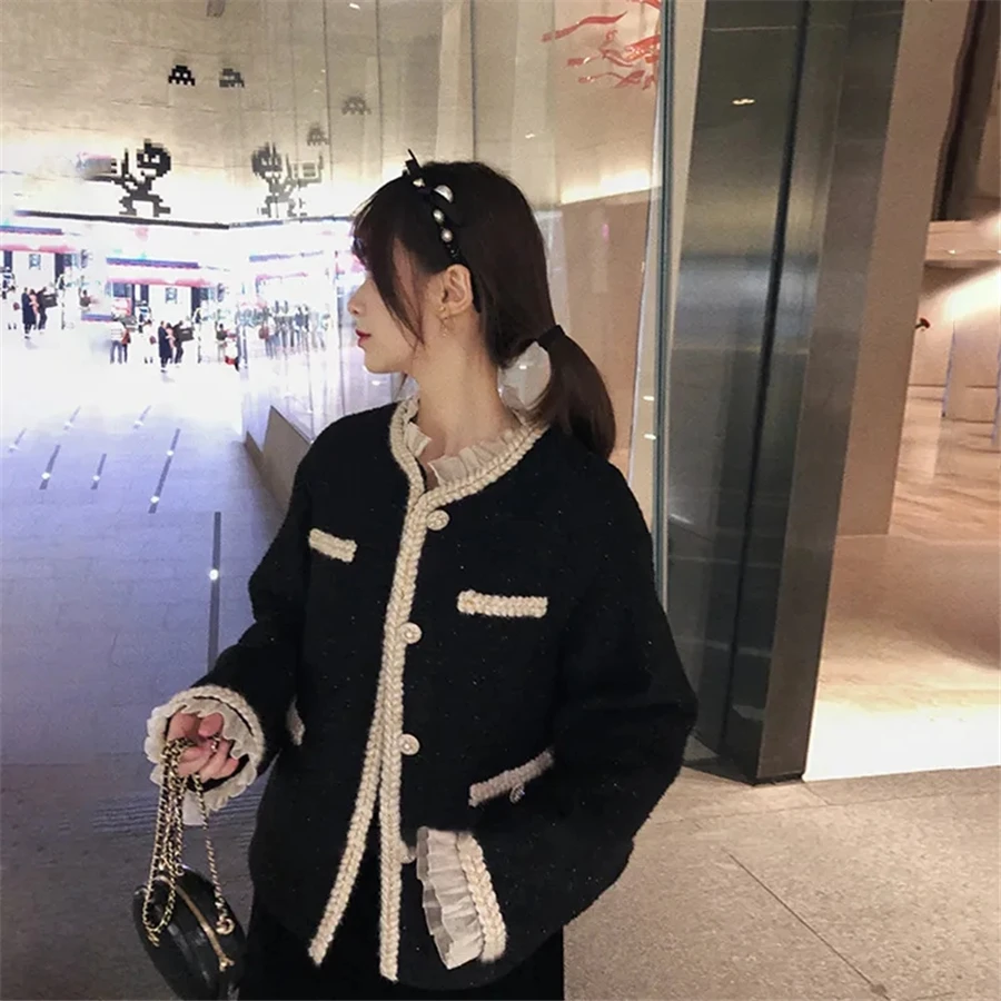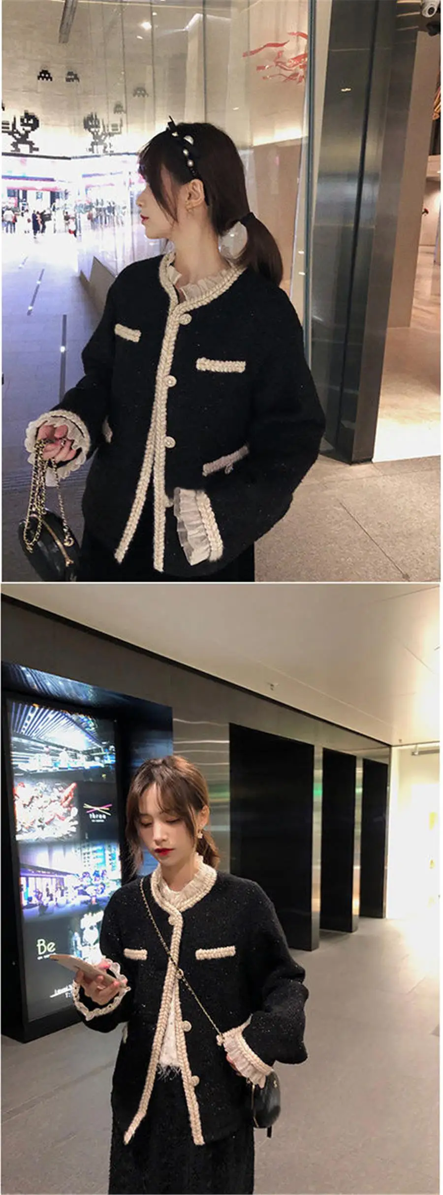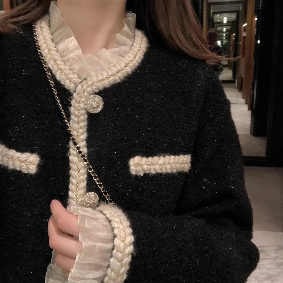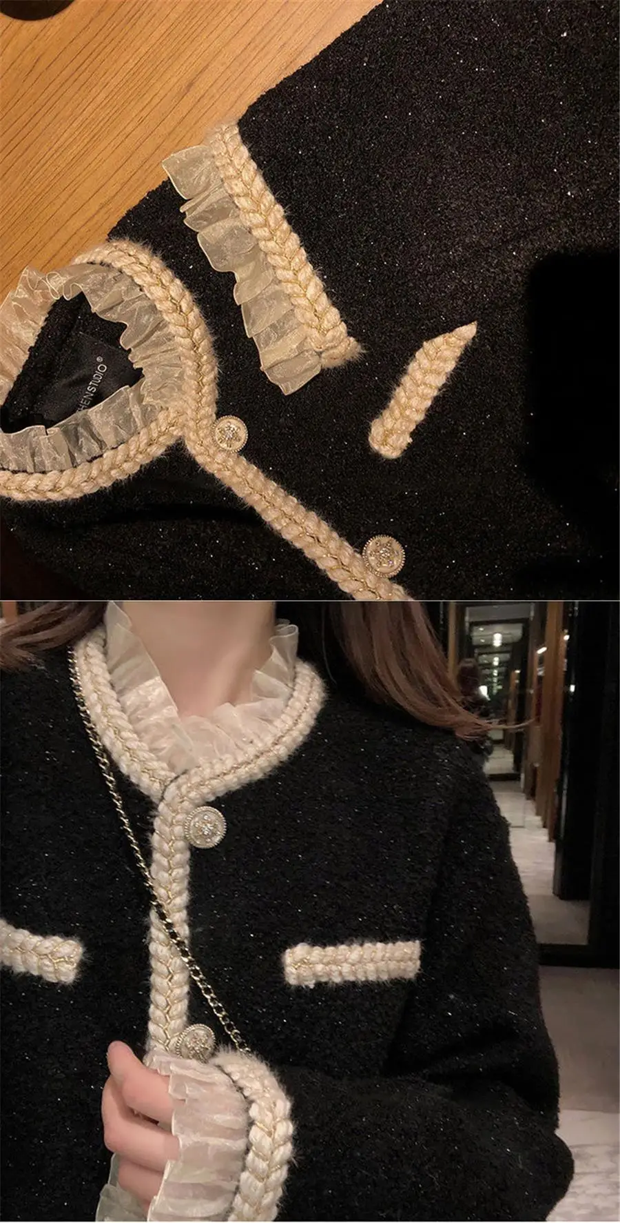 FREE SHIPPING Elegant Court Style knitted Cardigan outwear Lace Pathchwork Tweed jackets JKP6120