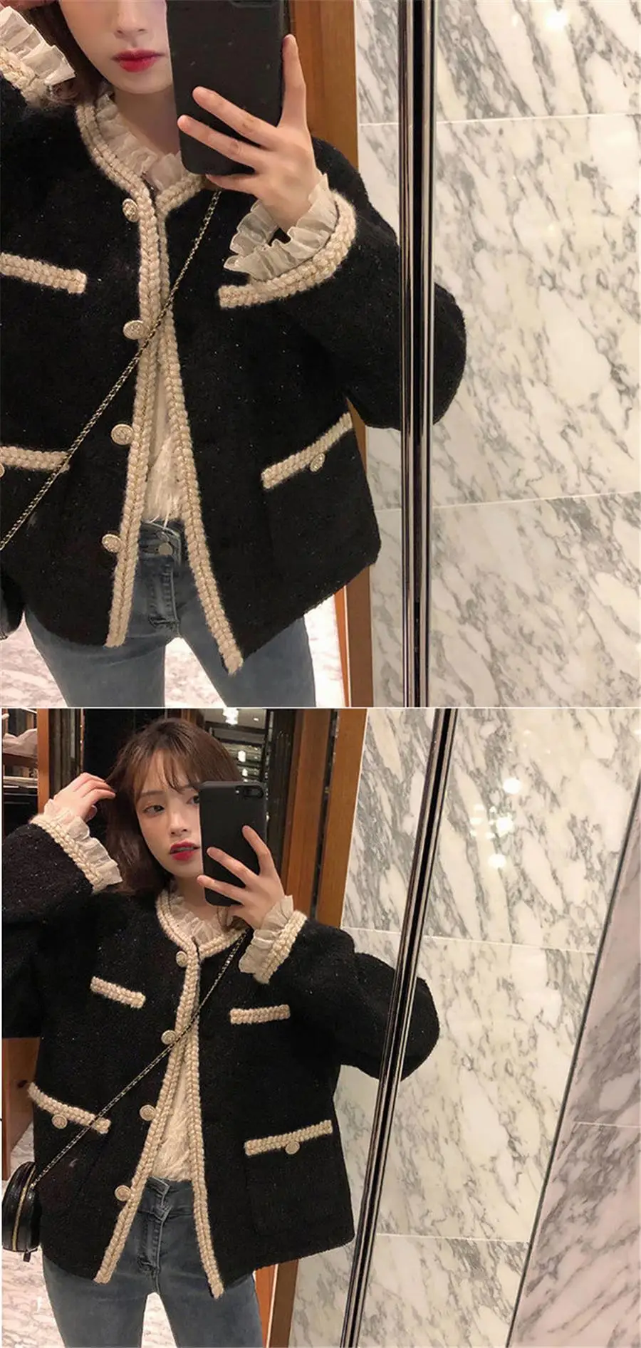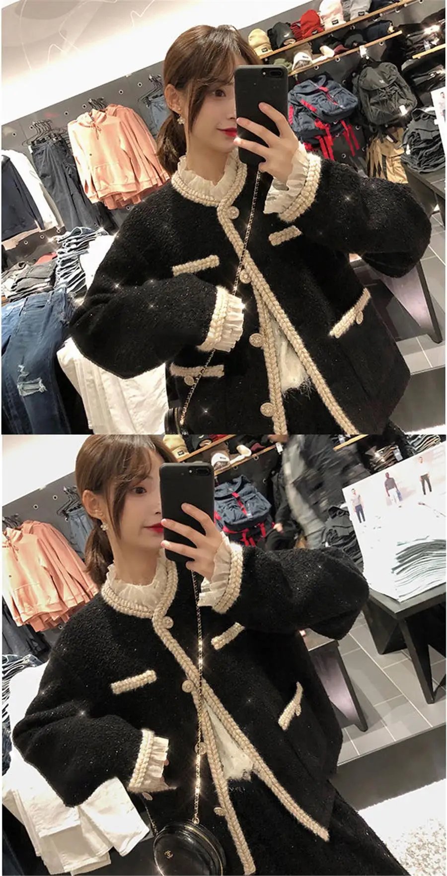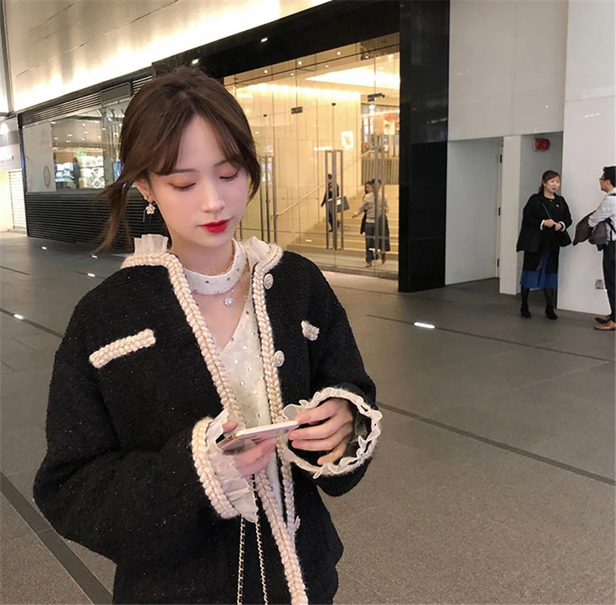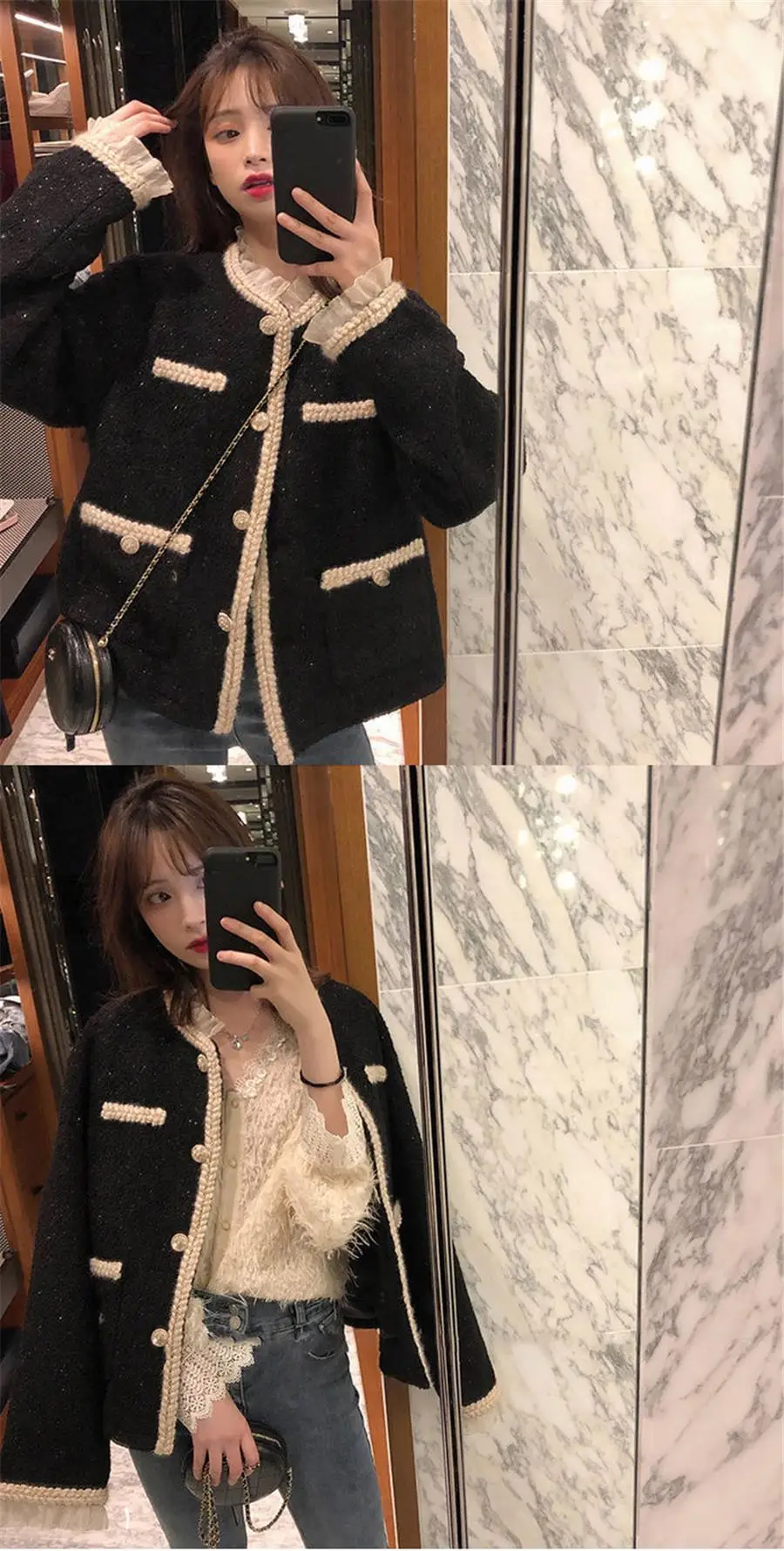 FREE SHIPPING Elegant Court Style knitted Cardigan outwear Lace Pathchwork Tweed jackets JKP6120