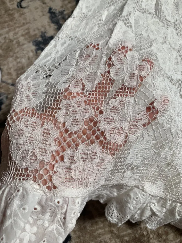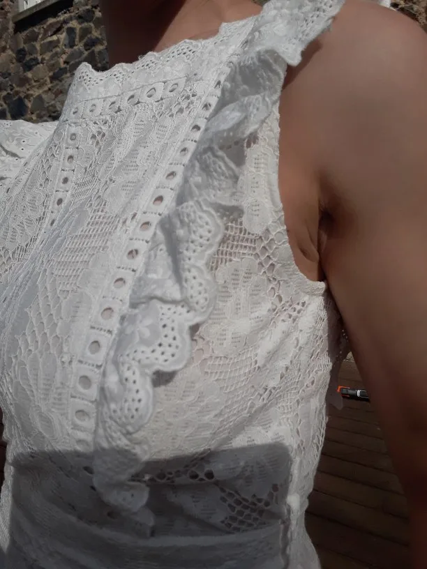 Very very happy with the dress. The lace is soft, beautiful and very well worked. Thank you and congratulations to the seamstresses who surely work very hard.