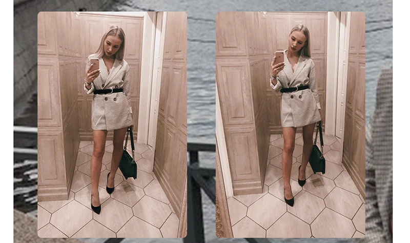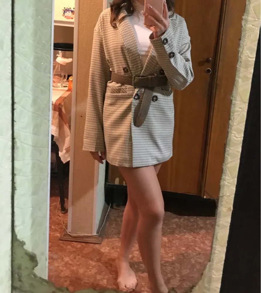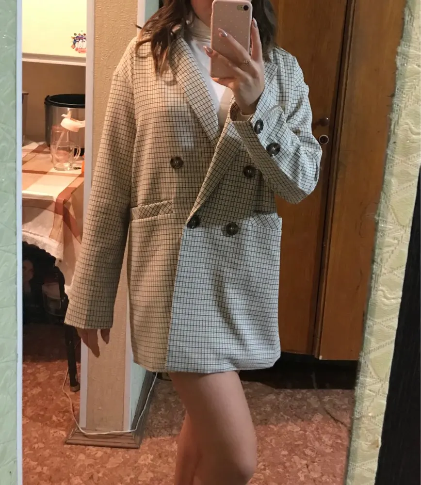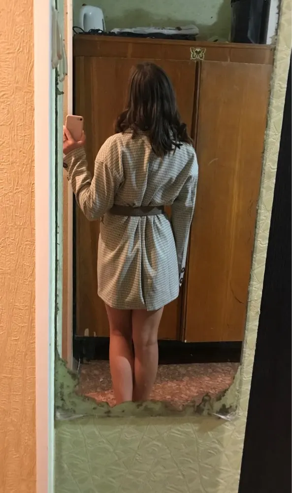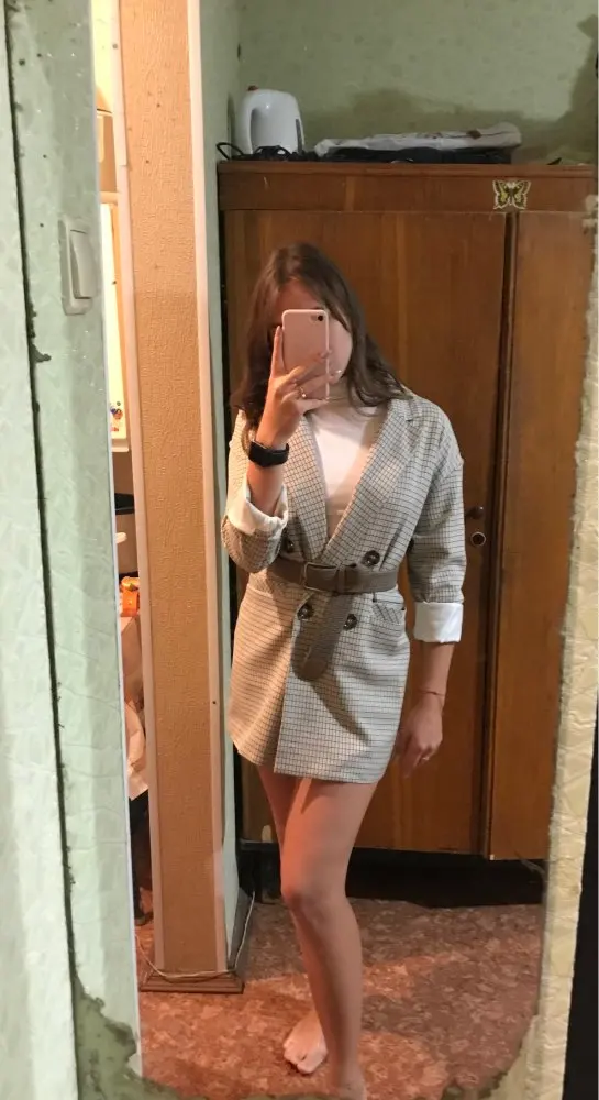 Shipping two weeks, track tracking. I want to say that the blazer, exactly the same as in the photo, the description is accurate. My russian size s, weight 55, height 164, ordered m, based on reviews, oversize, as expected, but with such wide and long sleeves is not quite comfortable, if not ordered. As a dress, i will not wear it, most likely, as it is short, you can not lift your hands, bend accordingly, too, and you need to collect behind, so that the front does not "wrinkle" the fabric. In general, i'm happy with the goods, i'll find what to wear with, because it looks stylish) the seams are all stitched well, the buttons are held, there is no smell.