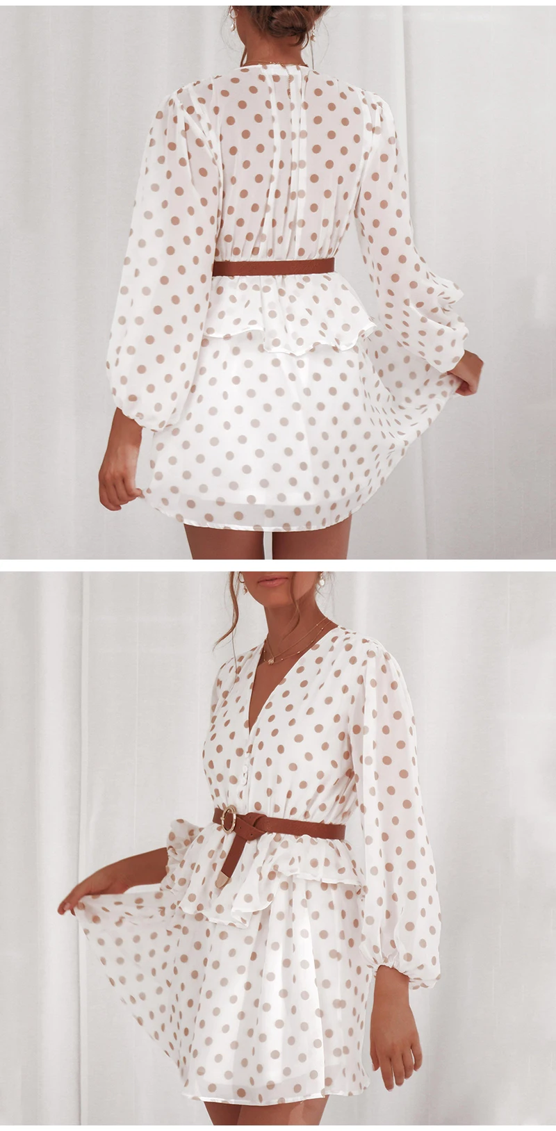 Home / Fashion / Dress / FREE SHIPPING Elegant Polka Dot See Through Chiffon Vintage Dresses Women Summer Autumn Long Sleeve Beige Beach Party Sundress JKP2628