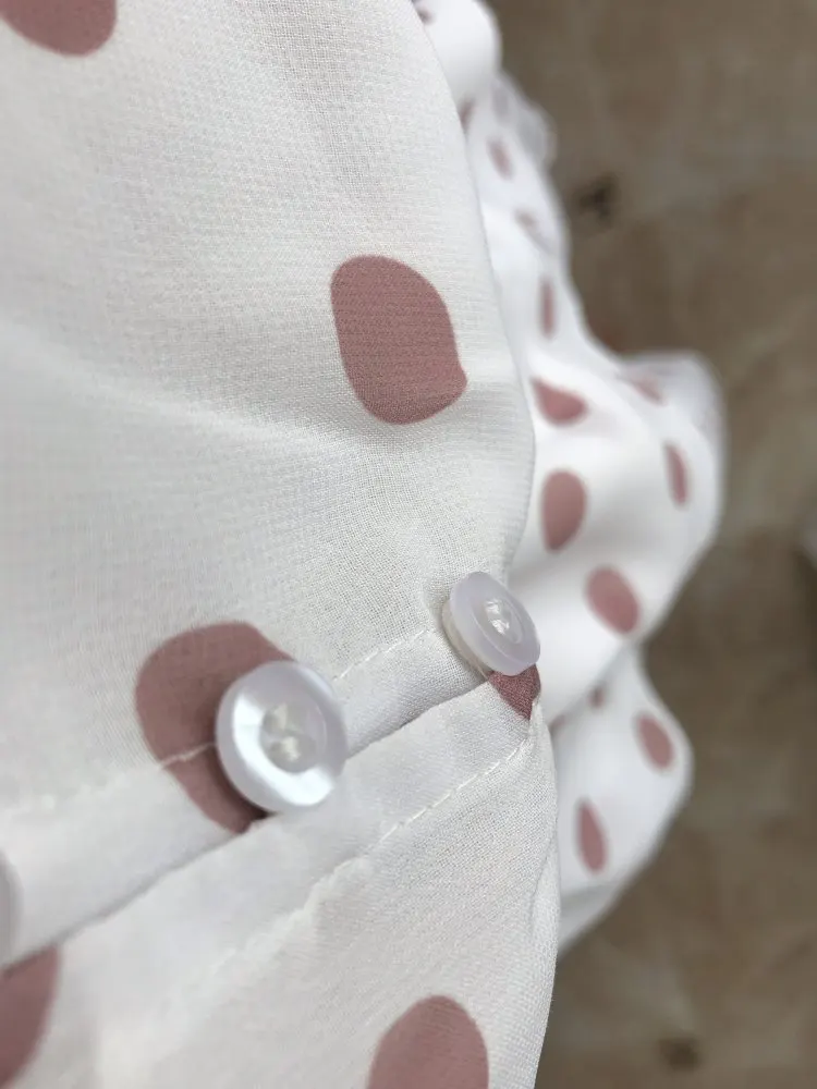 Button closure at bust, Elastic waist&wrist band,Layered ruffle detail