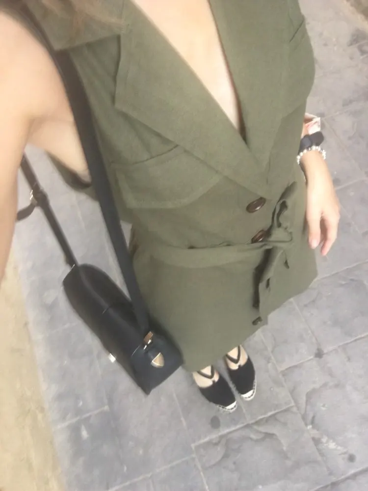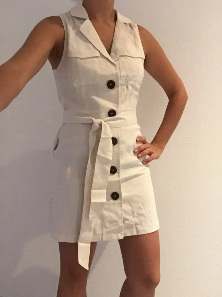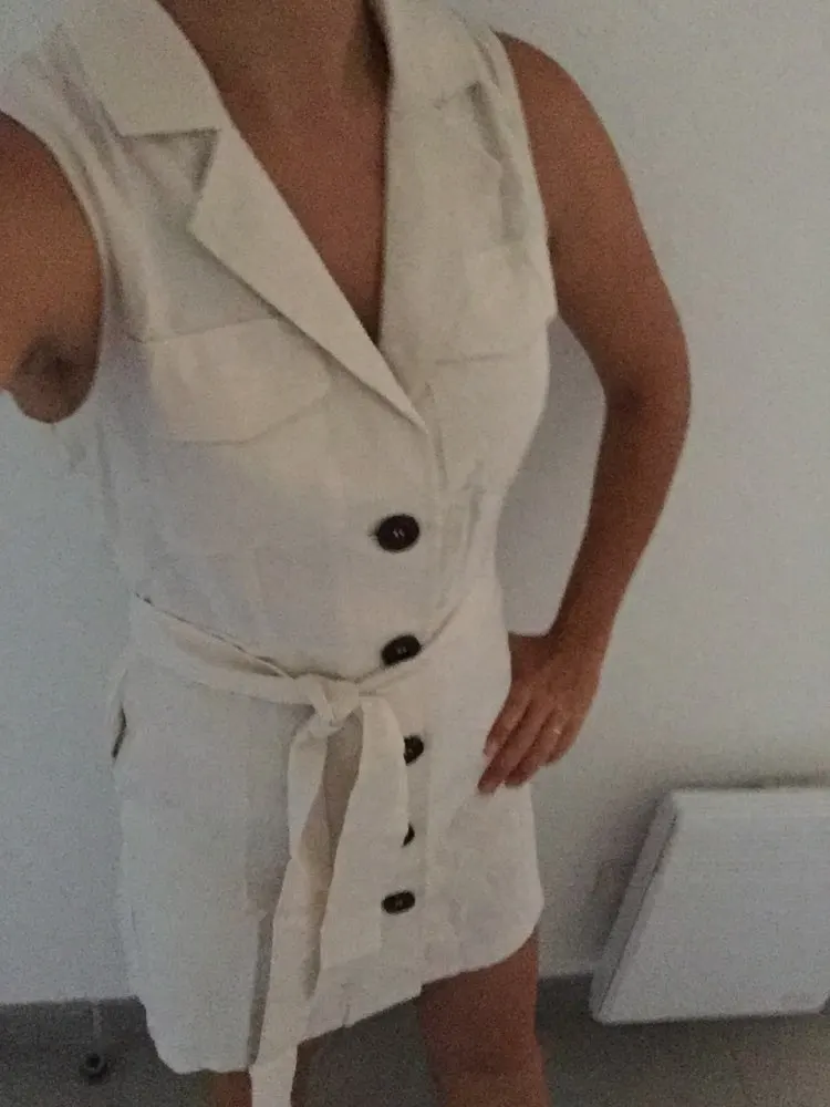 It's te v is tid is amazing! The fabric is similar to linen with that texture. It's beautiful, not transparent at all. Size s is a size well size da, i could even serve you if you wear a small m, this size s would be like a 36 spanish. This size s is slightly loose, squeeze nothing. It arrives in about 20 days in spain. The top part is crossed and you can put a pin on it so it won't open. If you have a lot of chest i could stay right above, i use an 85 b. my measurements are 85 cm/65 cm/87 cm, and weight 50 kg and i measure 1,65 meters. This is one of my favorite aliexpr stores is s! Always right with your dresses :)