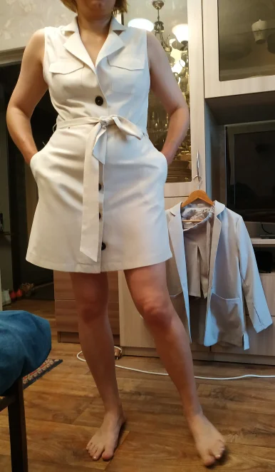 Everything is fine, as in the picture. A month after childbirth, until the waist returned, it looks so on me, but by the summer, i hope it will be excellent. And so the goods are beautiful.