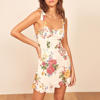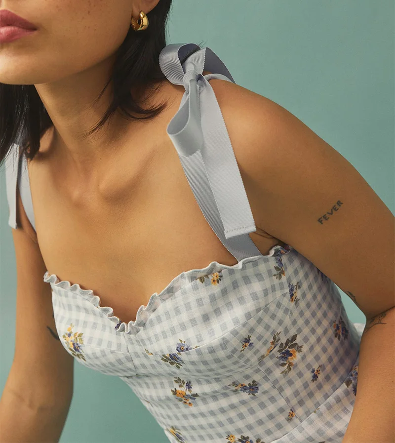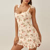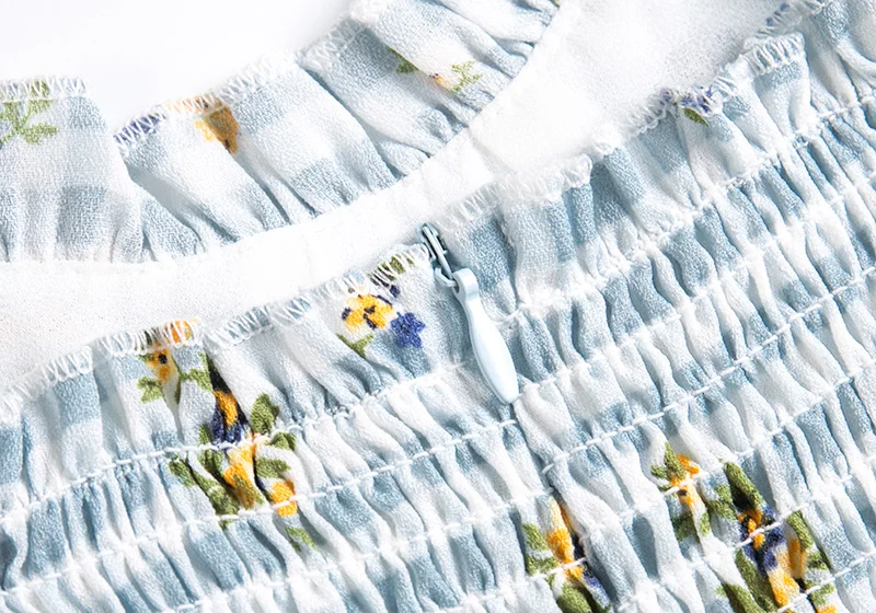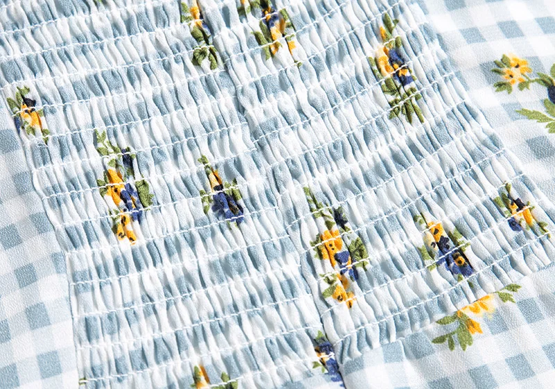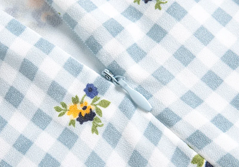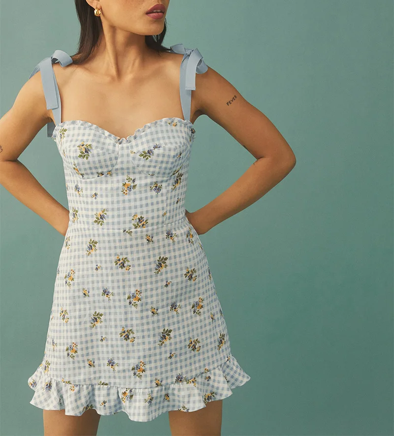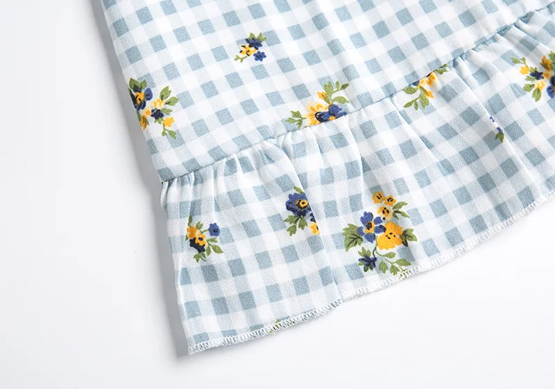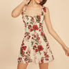 Free Shipping Elegant Sweetheart Neck Sleeveless Tie Strap Summer Dress Floral Print & Plaid Ruffle Hem Mini Dress for Women JKP7237